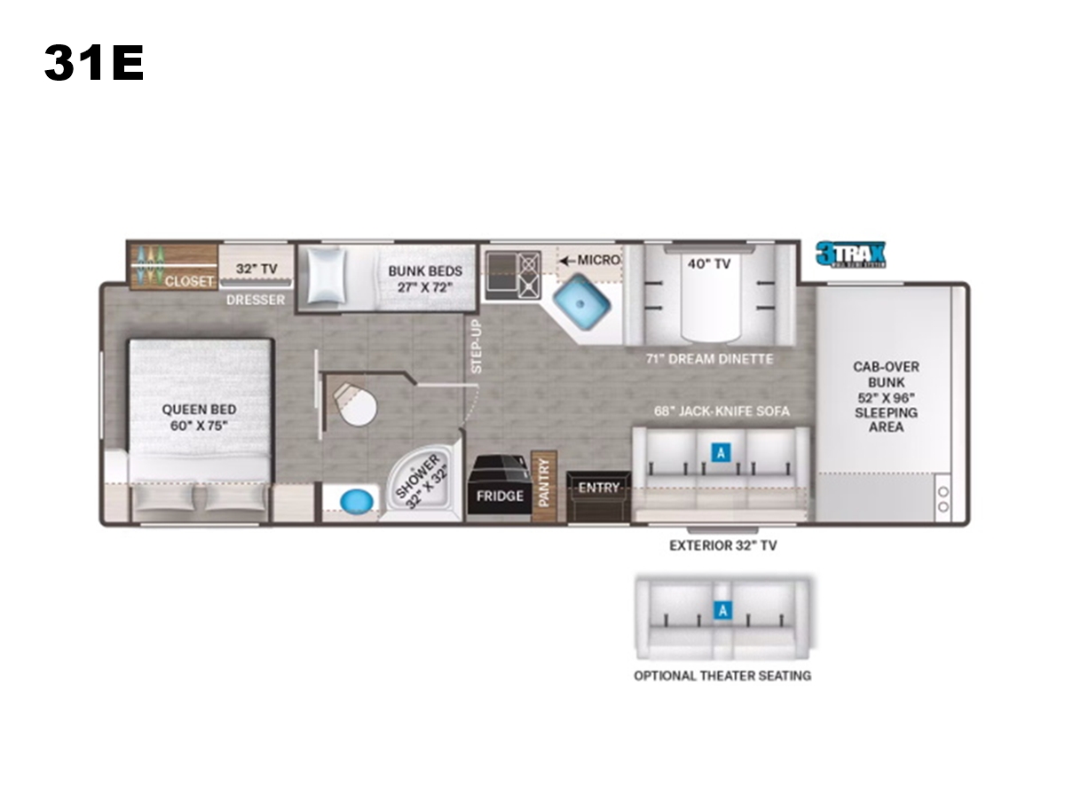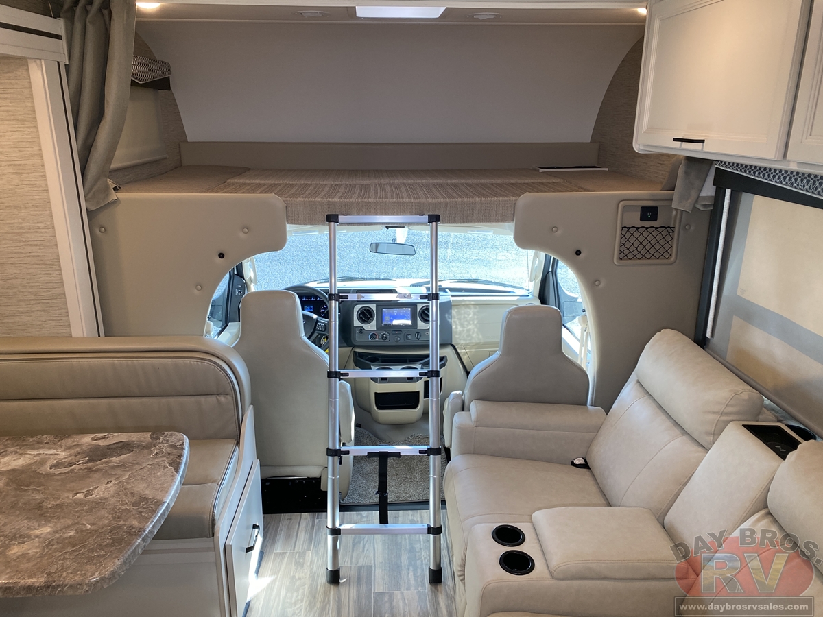 - Cab-Over Sleeping Area with Cup Holders and Telescoping Bunk Ladder