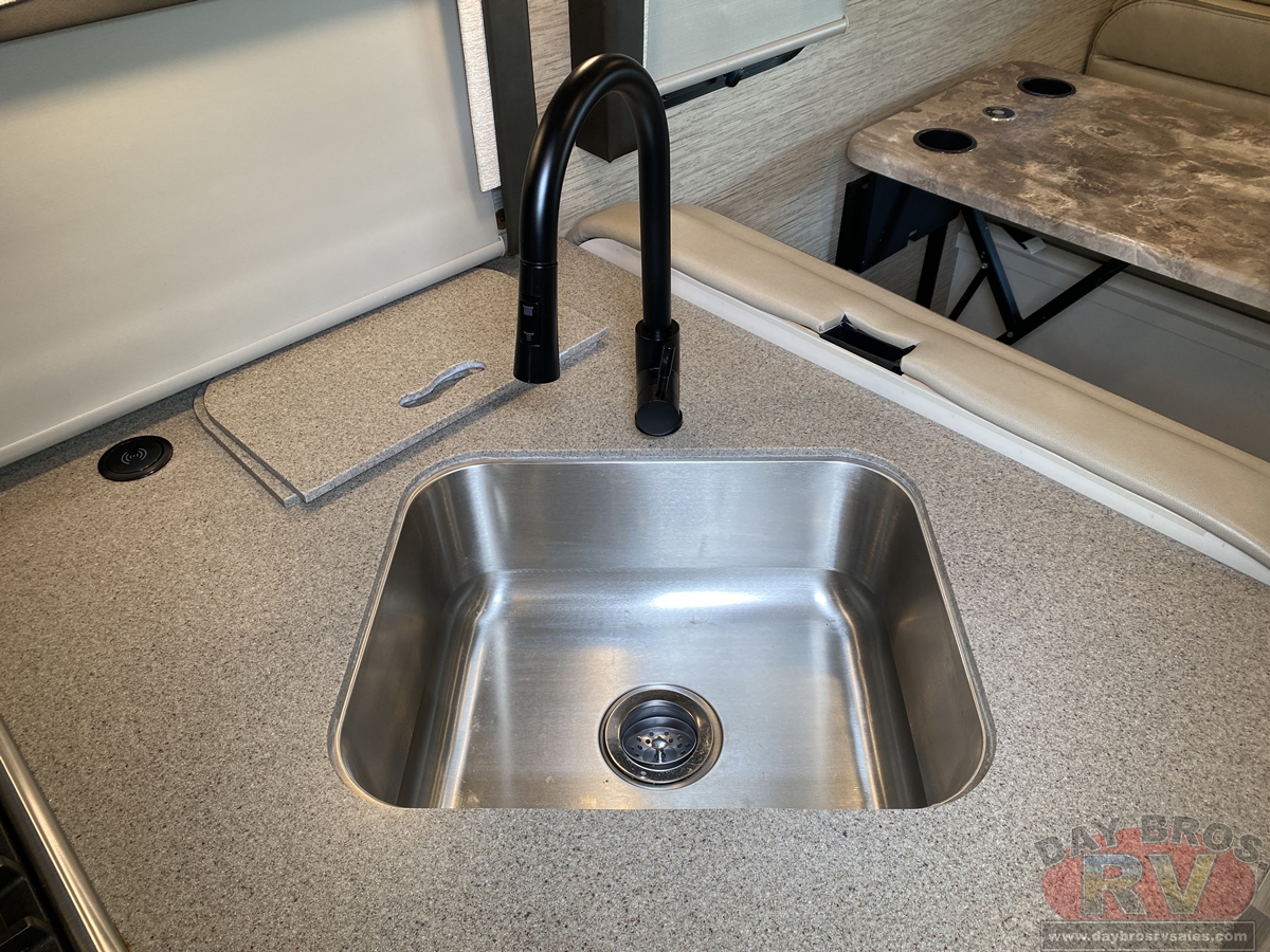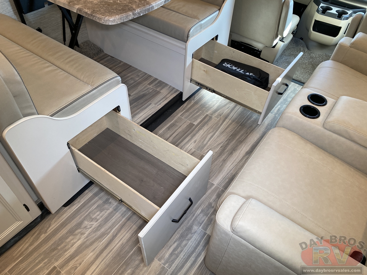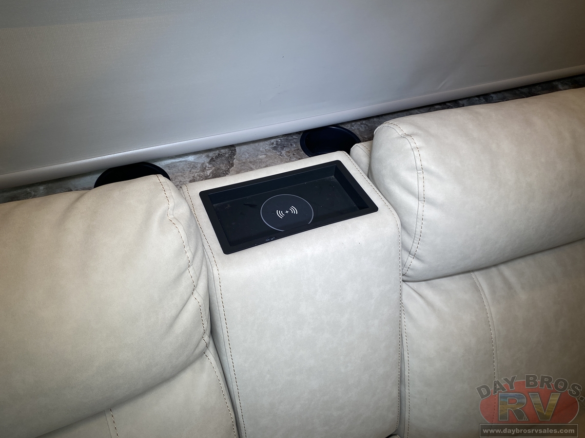 Great seating options are a must-have, so you'll be pleased with how the Four Winds checks this box for every floor plan. Gather around the Dream Dinette®, laugh, and tell stories until nighttime; then fold down the dinette into an extra bed. Four Winds living arrangements range from jackknife sofas, Murphy bed sofa conversions, and theater seating. Each layout comes with a TV and wireless phone charger with a USB plug at the dinette tabletop for your convenience.