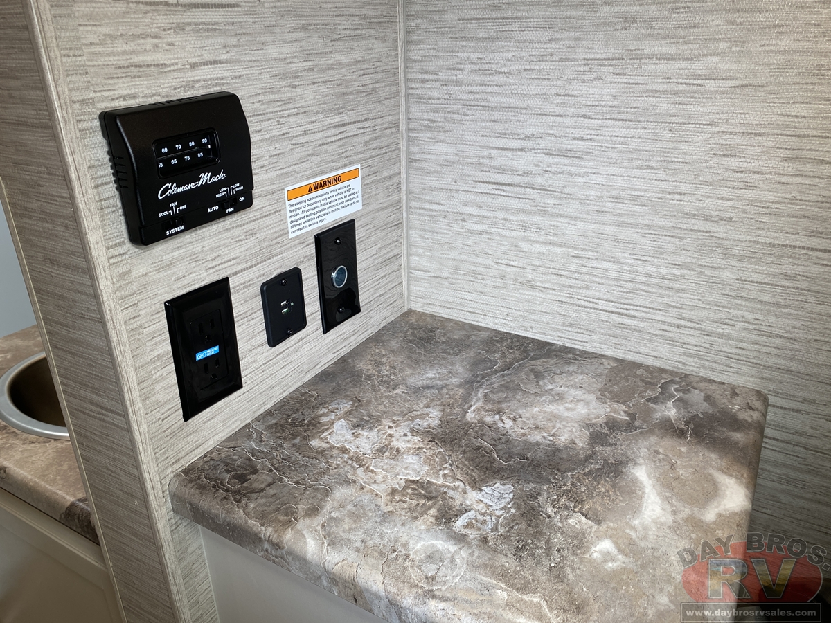Imagine waking up to a beautiful view of your destination. Rest easy on the Twin-to-King conversion, Queen or a King-size bed, depending on the floor plan. A power charging center for electronics and a 12-volt outlet get devices charged and ready for the day. Every Four Winds model has a cab-over bunk sleeping area, and some come with bunk beds.