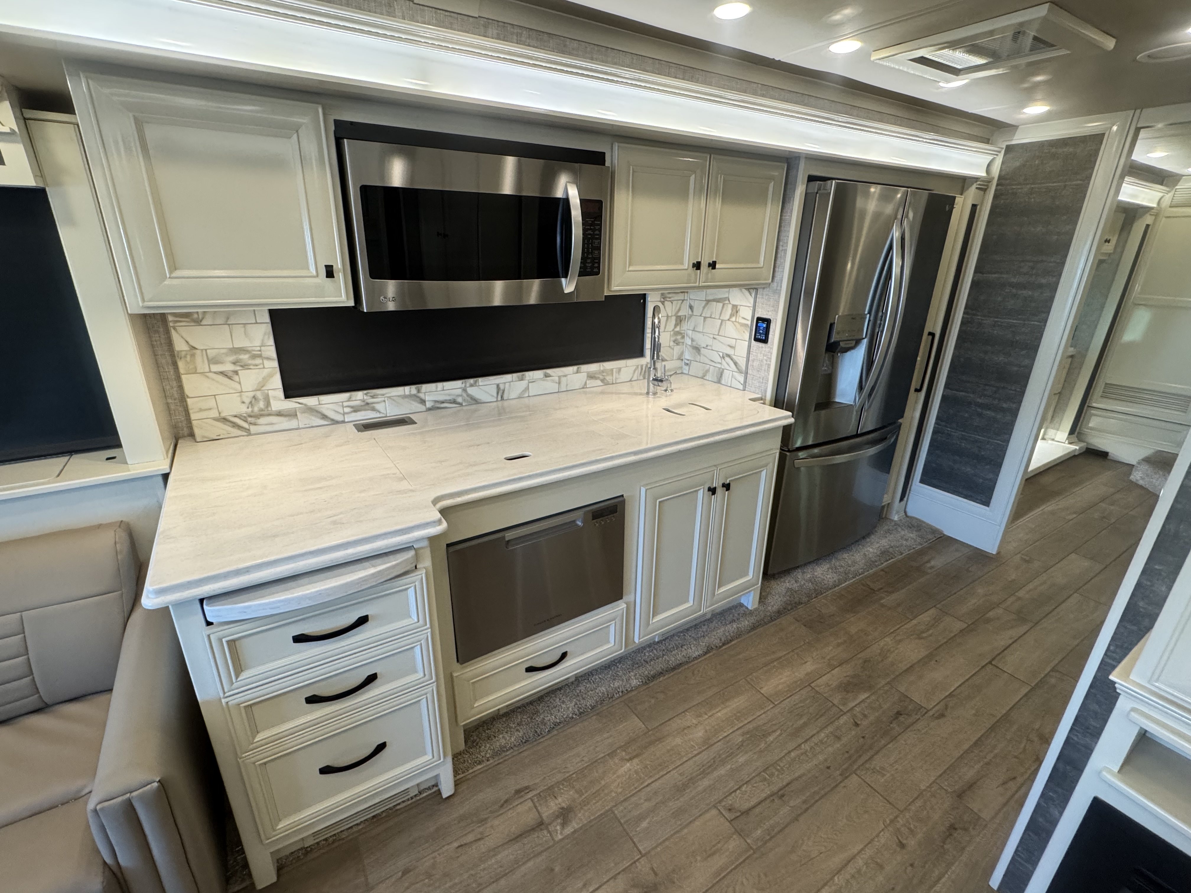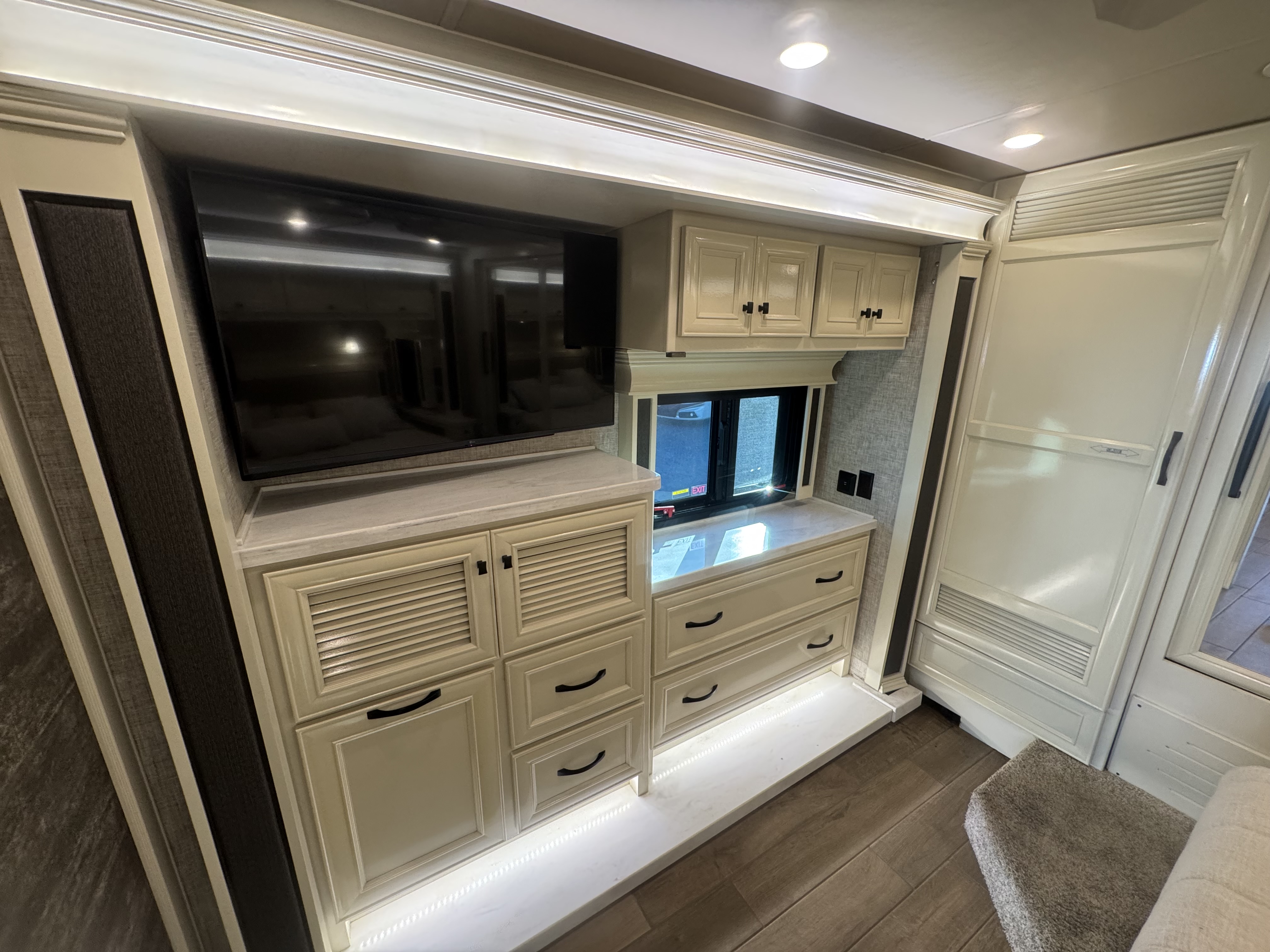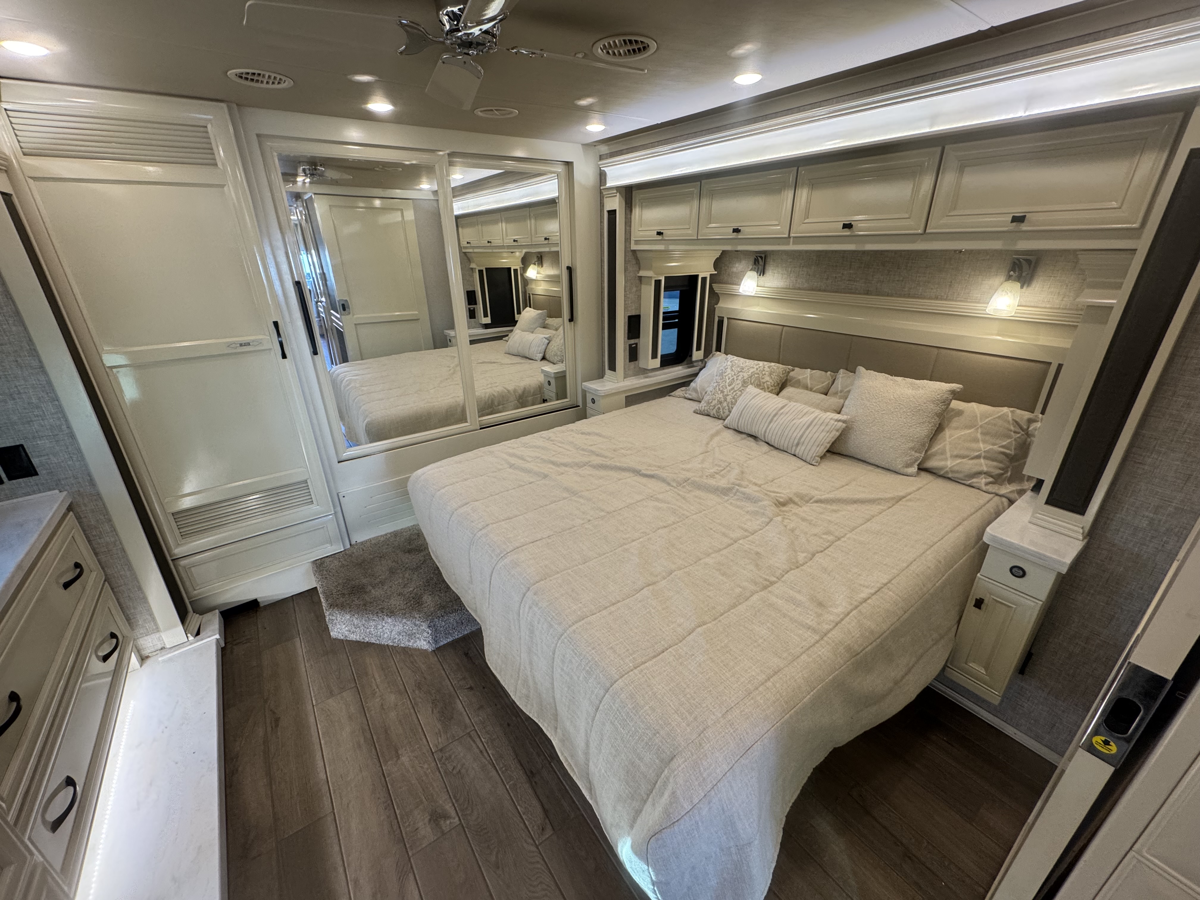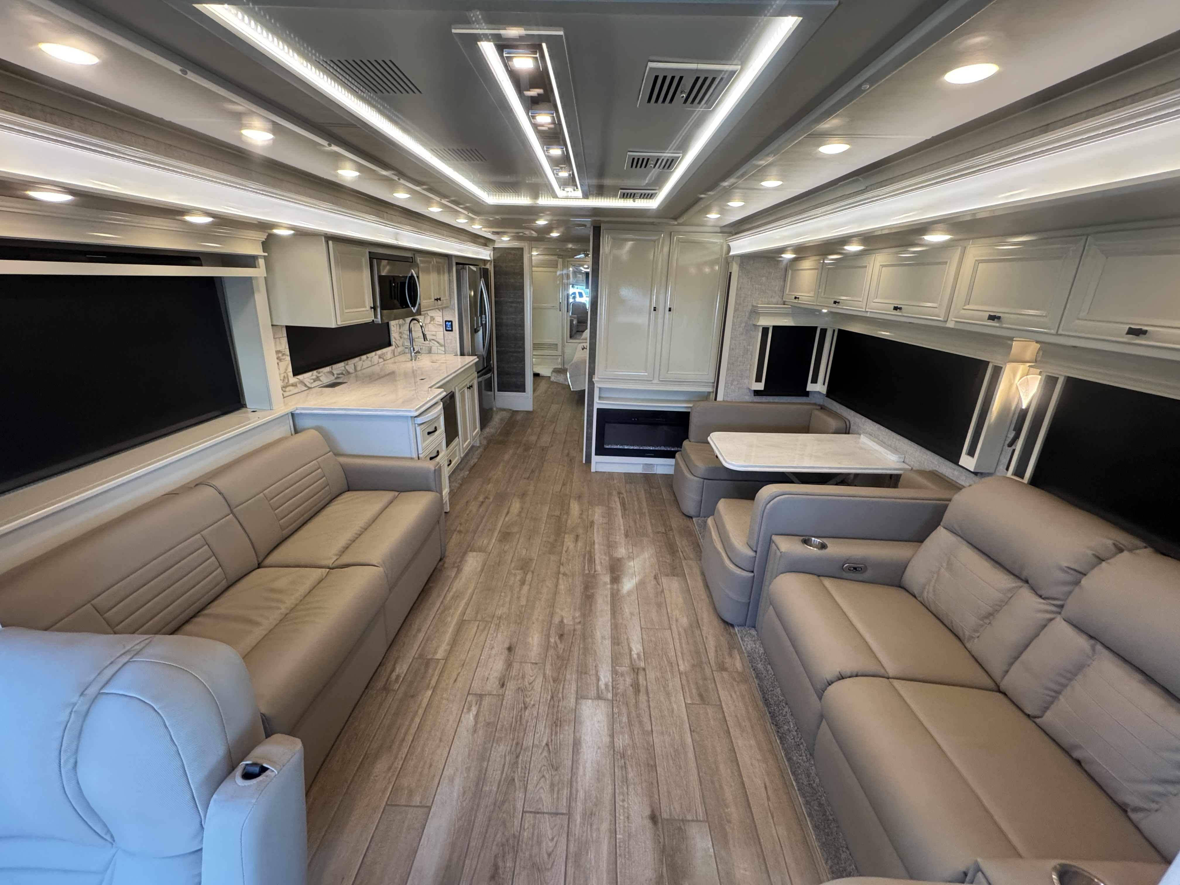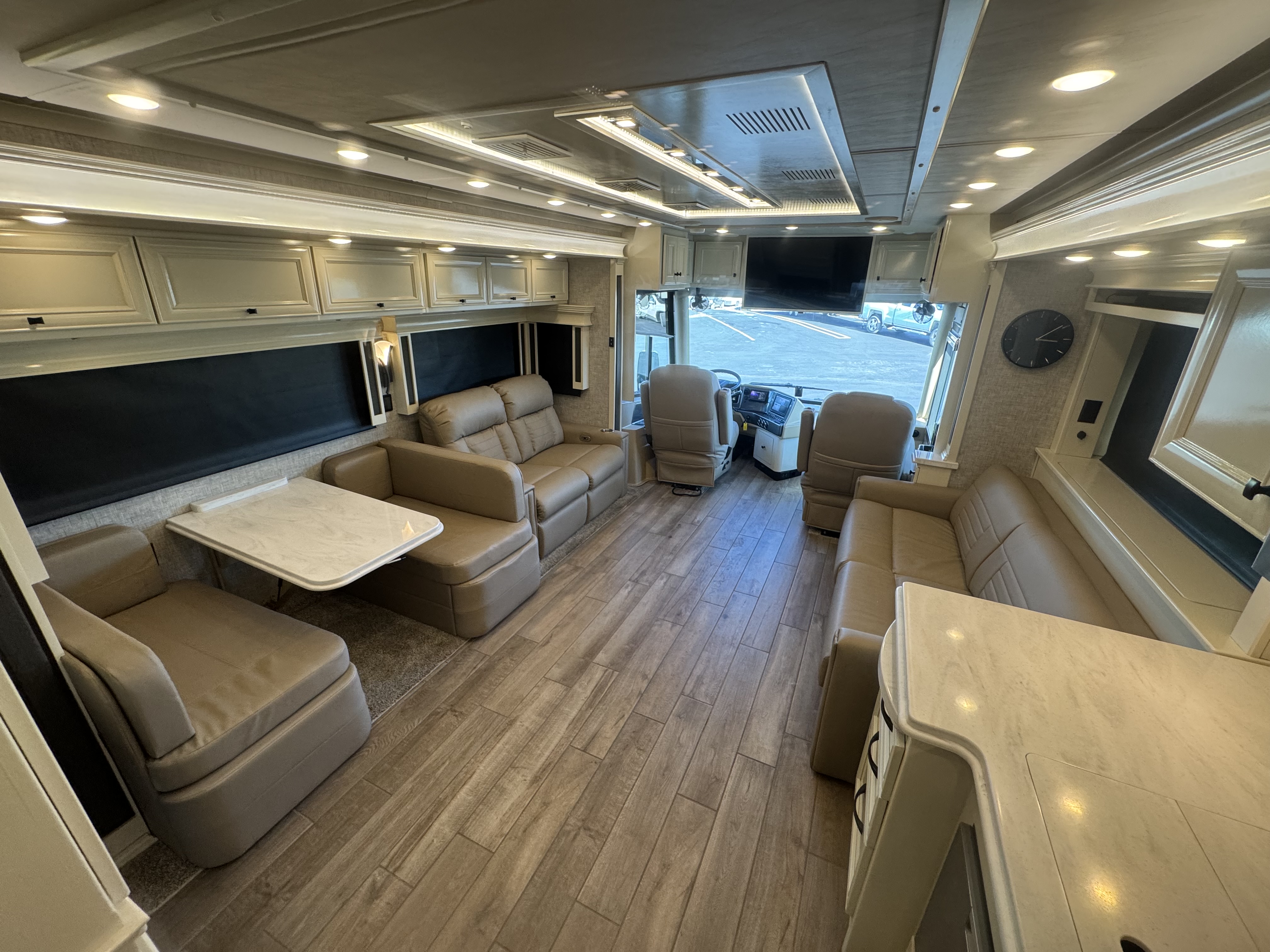LED Lighting | Soft Touch Vinyl Ceiling | Treated Carpet in Slide-outs | Handcrafted Cabinet Fascias and Doors with Concealed Hinges | Solar and Privacy Shades | Power Roof Vents | Smoke Detector | Central Vacuum Cleaner with VacPan | Soft Close Drawers | Sound Bar with Subwoofer | BluRay Player in Bedroom Connected with Sound Bar