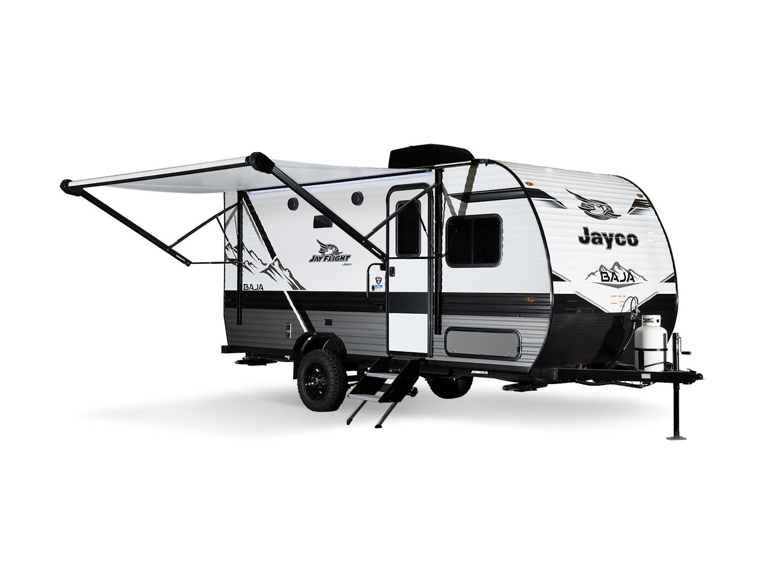 The Jay Flight SLX is so compact and easy to tow, you might just forget you’re pulling a camper behind your vehicle. Although shorter, the SLX doesn’t skimp on amenities. It has real wood cabinet doors, galvanized steel wheel wells, an integrated A-frame, dark tinted windows for privacy and UV protection and back-up camera prep.