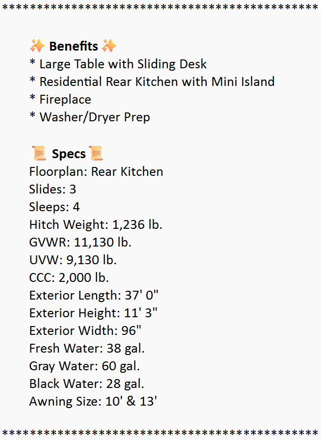 * Full Lino in Slide-Outs and Bedrooms (Carpetless)