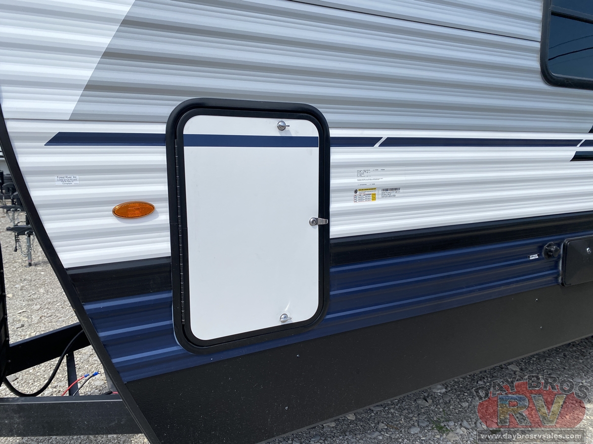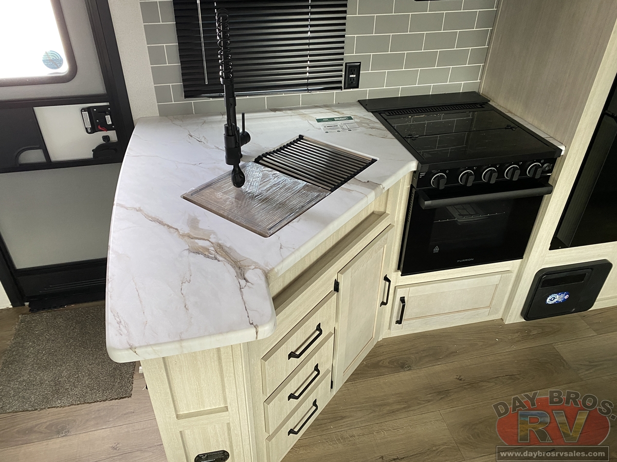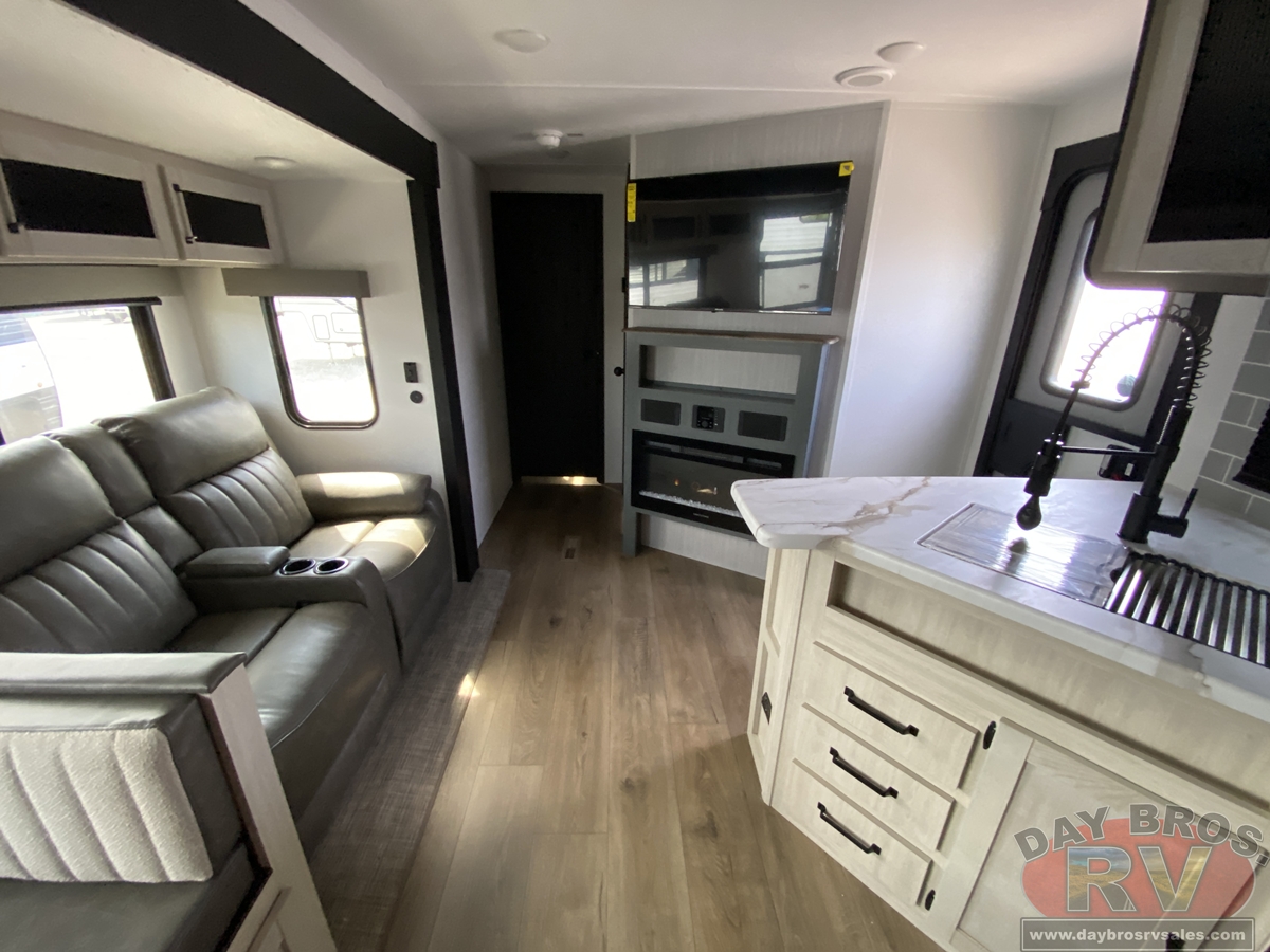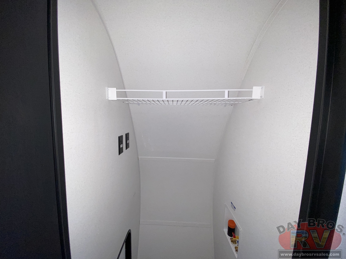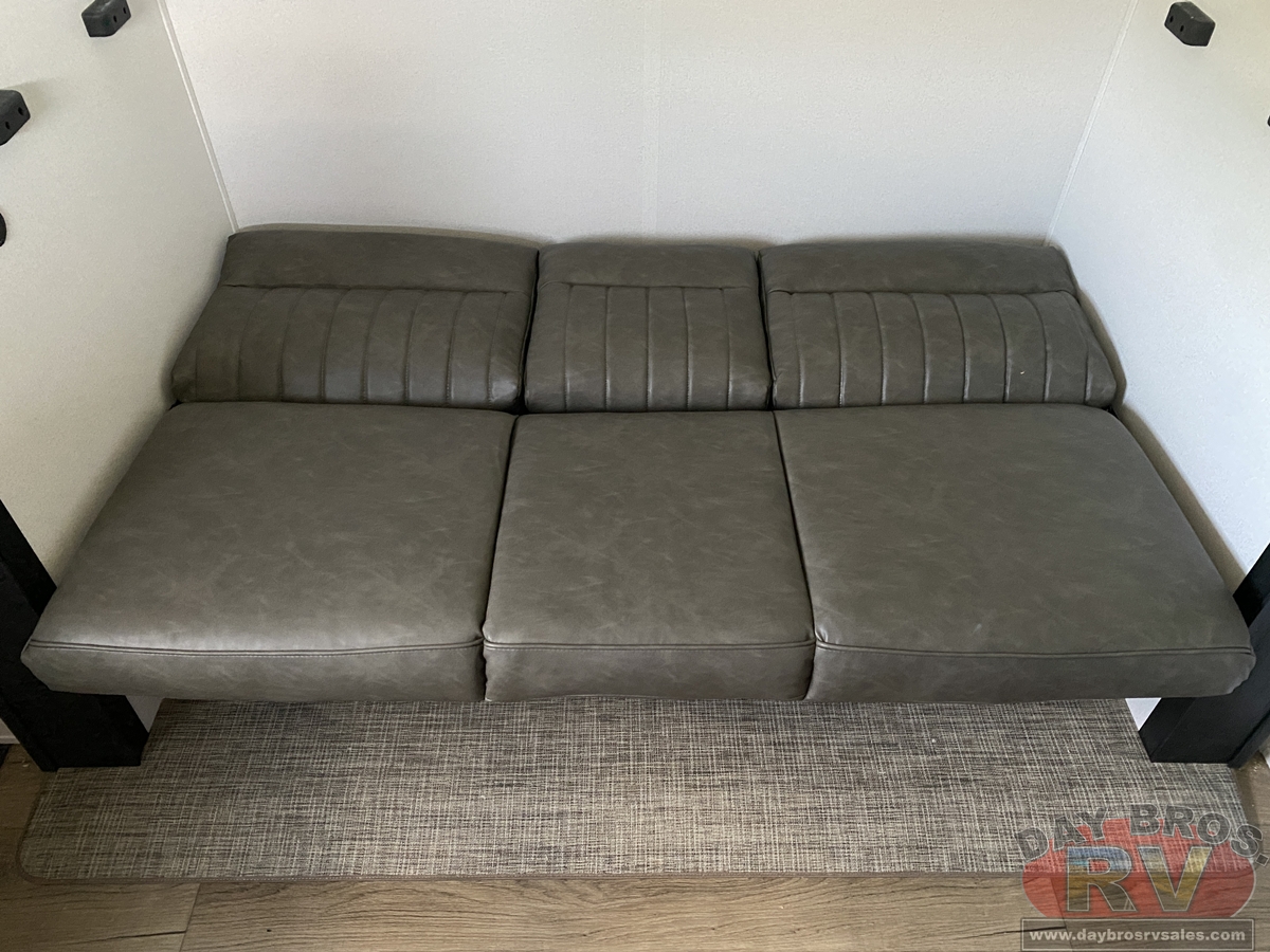 This bunk house travel trailer supplies you a great deal of space in the front bedroom. With a slide out and a large closet for all of your clothes, it will feel like your bedroom at home. The bunk house in the rear provides space for all guests to be comfortable and to make things a cut above, this floor plan provides two bathrooms. Furthermore, the exterior mini camp kitchen features a fridge and a griddle for those of you who like to cook in nature.