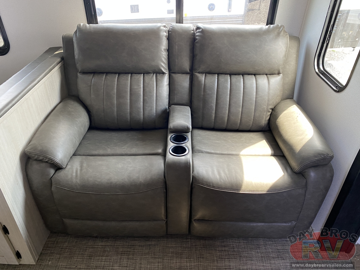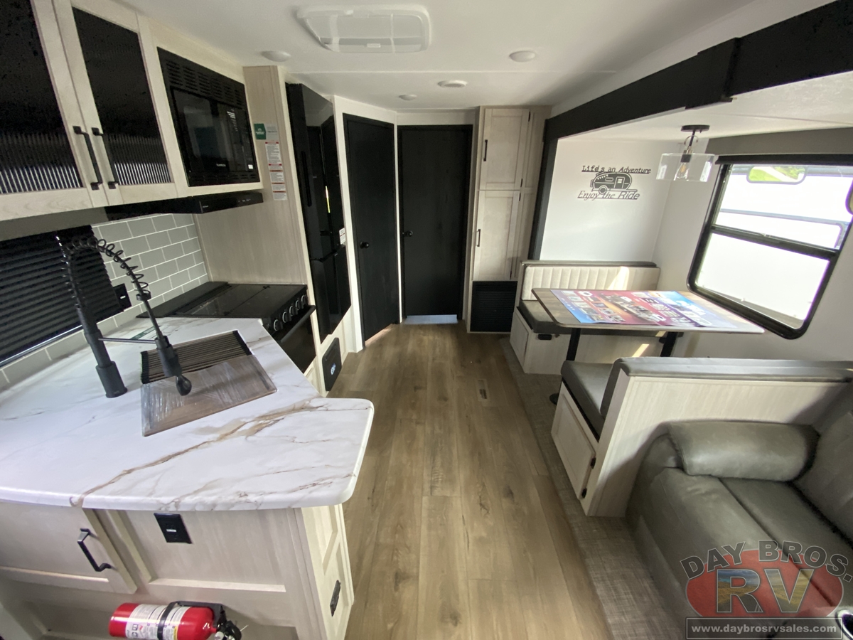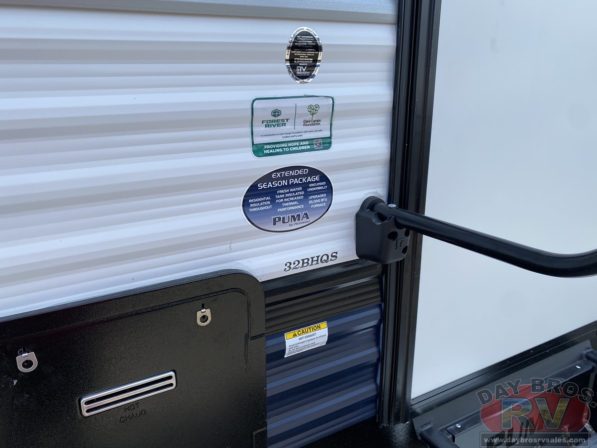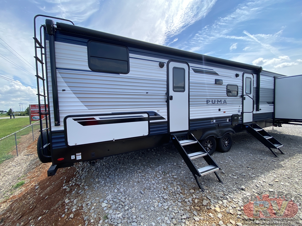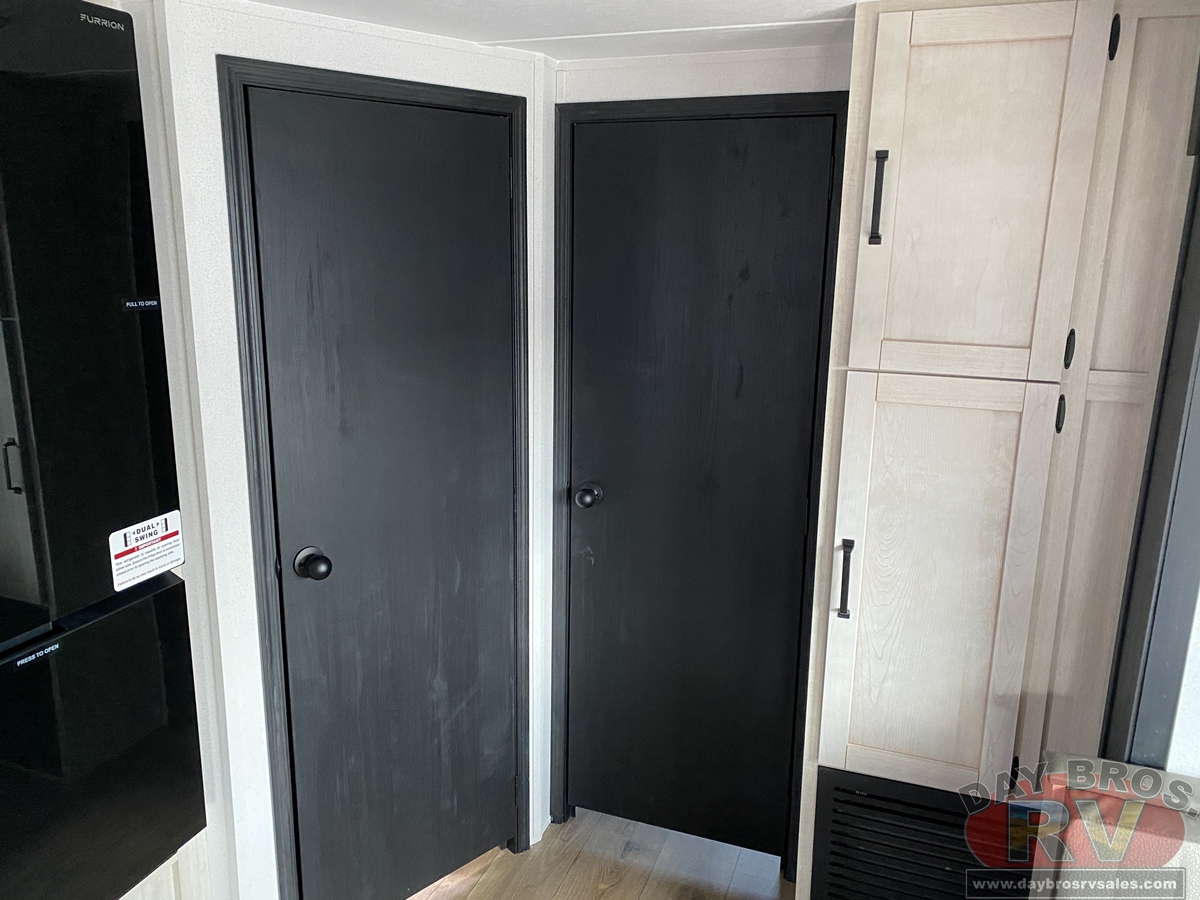 This bunk house travel trailer supplies you a great deal of space in the front bedroom. With a slide out and a large closet for all of your clothes, it will feel like your bedroom at home. The bunk house in the rear provides space for all guests to be comfortable and to make things a cut above, this floor plan provides two bathrooms. Furthermore, the exterior mini camp kitchen features a fridge and a griddle for those of you who like to cook in nature.