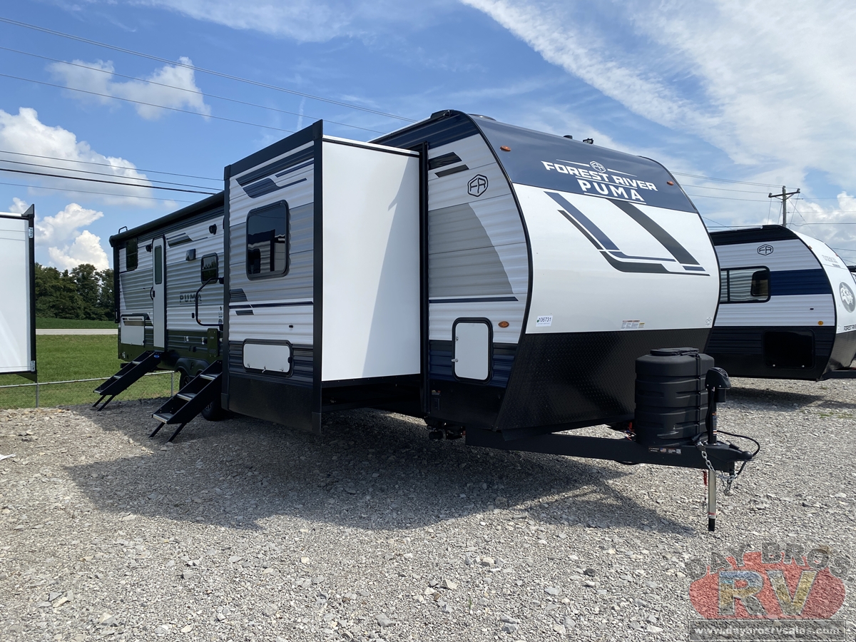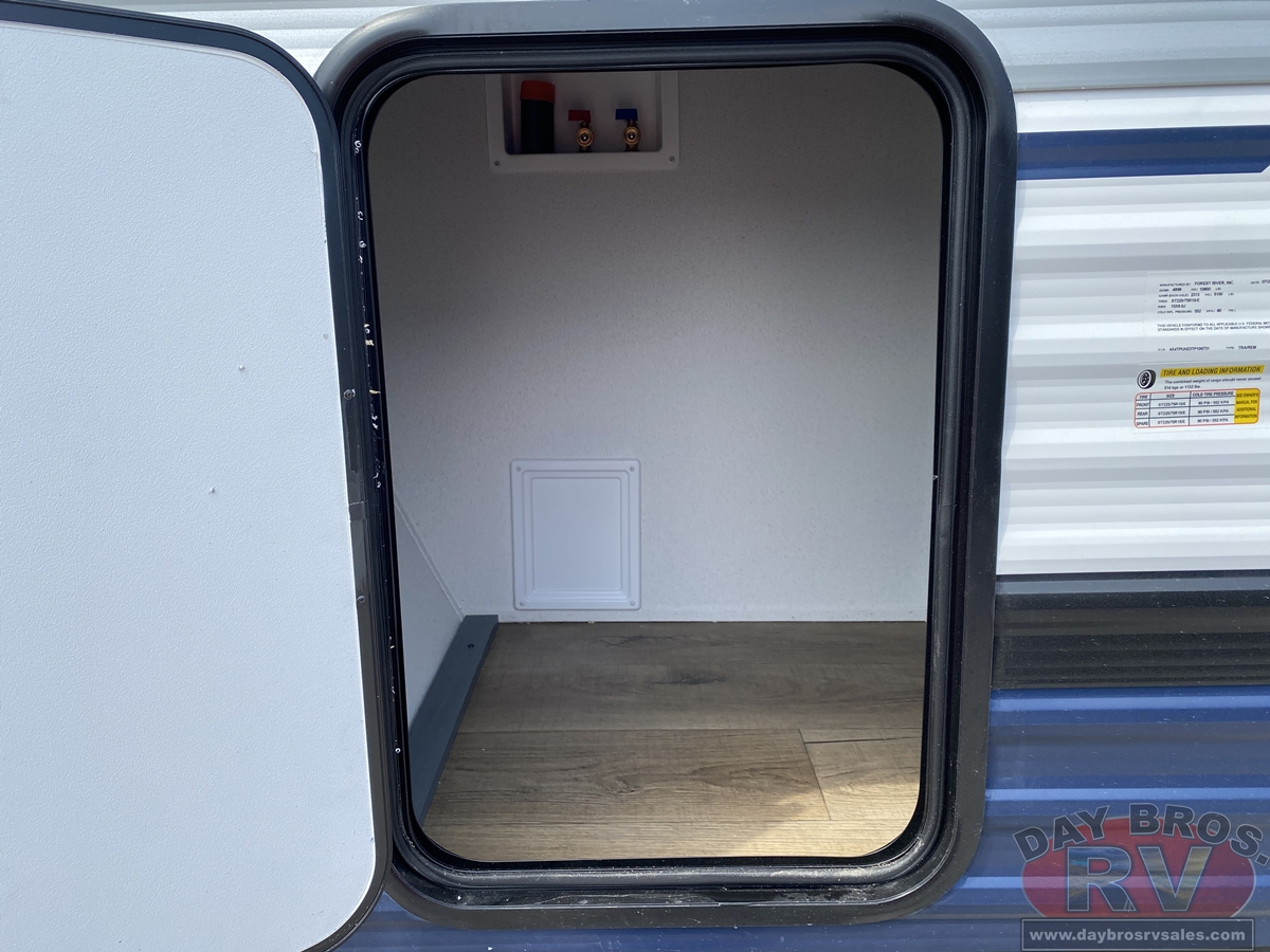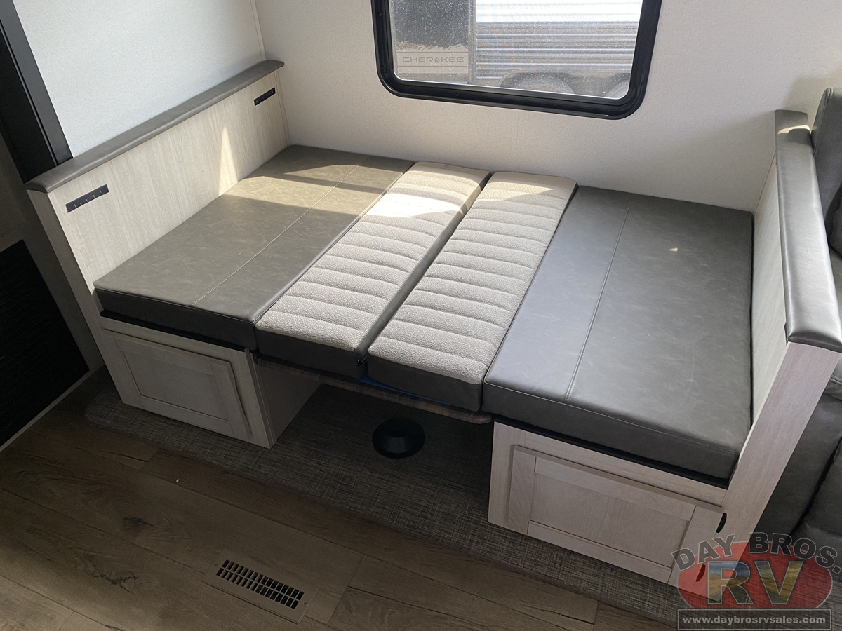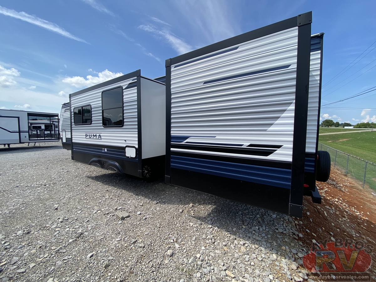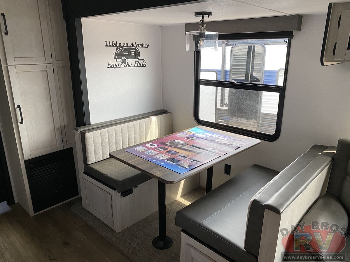 This bunk house travel trailer supplies you a great deal of space in the front bedroom. With a slide out and a large closet for all of your clothes, it will feel like your bedroom at home. The bunk house in the rear provides space for all guests to be comfortable and to make things a cut above, this floor plan provides two bathrooms. Furthermore, the exterior mini camp kitchen features a fridge and a griddle for those of you who like to cook in nature.