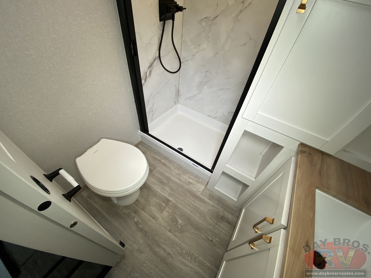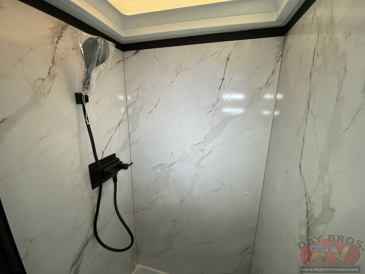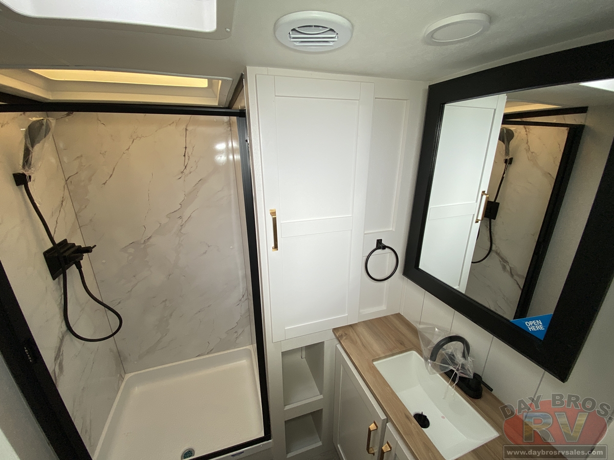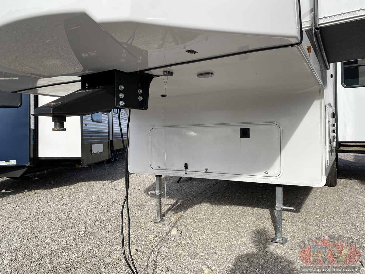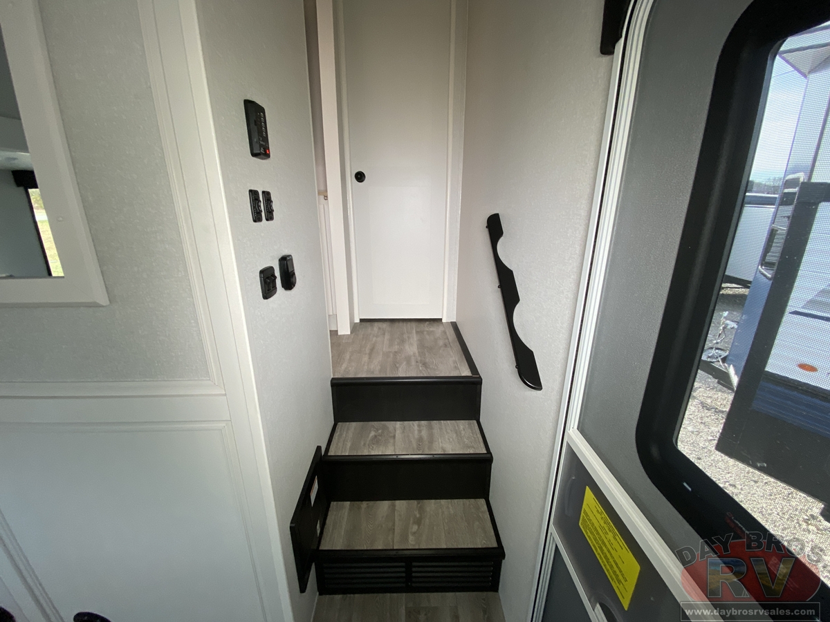 With any Eagle SLE fifth wheel by Jayco, you will enjoy a lighter tow weight, high-end finishes, and the same quality construction you've come to expect from Jayco! There is an Alpha Ply TPO roof membrane, a fully enclosed and heated underbelly, plus Stronghold VBL walls for added durability. There is also a rear 2" towing receiver outside, along with metal slam latch baggage doors, MORryde Step Above entry steps, and a Winegard Air 360 antenna with router prep if you want to stay connected as you camp. Once inside you'll enjoy the handcrafted door/drawer fronts, shower skylight, and residential vinyl flooring throughout with no carpet for an easier clean. The on-demand water heater, 30K BTU furnace, and 15K BTU "Whisper Quiet" A/C will ensure your comfort, and the Overland 1 Solar Package will provide off-grid capabilities!