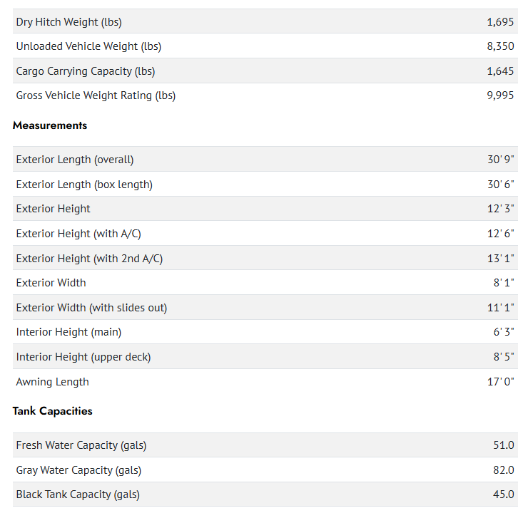 Camping just got a whole lot sweeter in this fifth wheel with double slides, a rear kitchen, and sleeping space for five to six. You'll love waking up each morning in the front private bedroom that includes a queen bed, overhead cabinets, plus a wardrobe and dresser slide. Your guests who slept on the tri-fold sofa and booth dinette can convert these back to seating space in the morning, and breakfast can be made in the rear kitchen. Here, you'll find ample counter space, a microwave and range, plus a pantry and 12V refrigerator for food storage. Outside, gear can be stored in the pass-thru storage area, and you're sure to enjoy the 17' power awning with LED Lights!