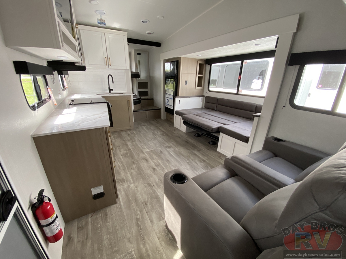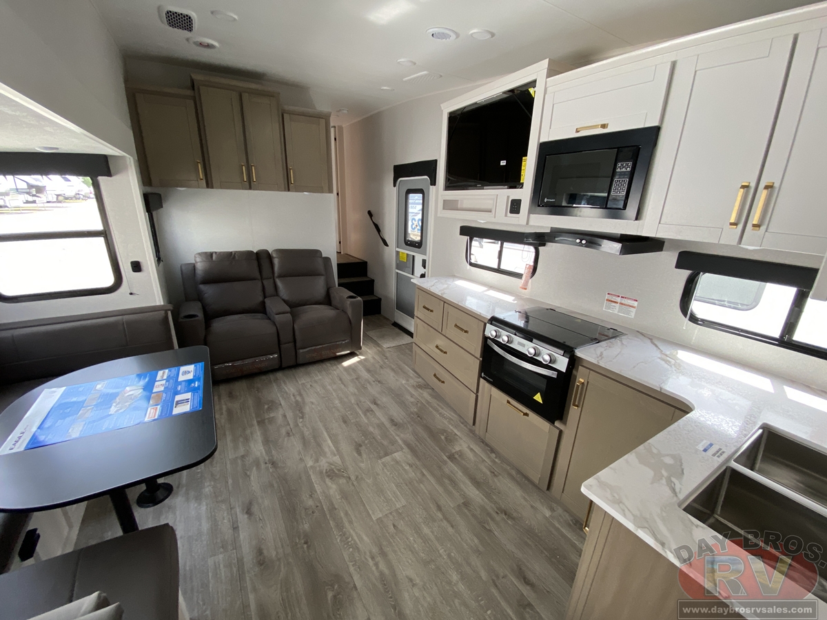 Whether you’re boondocking in the wilderness or camping lakeside with friends, this Jayco Fifth Wheel is designed to take you there in style, comfort, and confidence. The road is calling, and the Eagle SLE is ready to take you there.