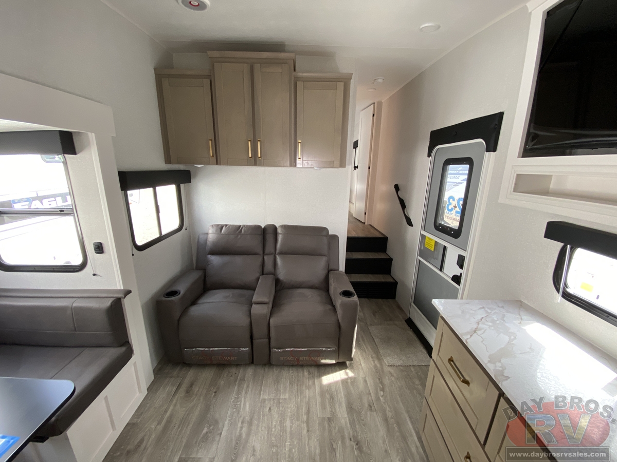 Crafted for adventurers, families, and weekend warriors alike, the Eagle SLE features lightweight construction that makes towing a breeze—so you can focus on the journey, not the logistics. With Climate Shield™ zero-degree tested weather protection, including a fully enclosed and heated underbelly, double-layer fiberglass insulation, and a 30,000 BTU furnace, you’ll stay comfortable no matter the season. The aerodynamic automotive-style front cap ensures smooth towing, while the MORryde Step Above™ entrance step and wide, pass-through storage compartments provide easy access to your gear. With independent satellite and cable hookups, you can stay connected—even when you're miles from civilization.