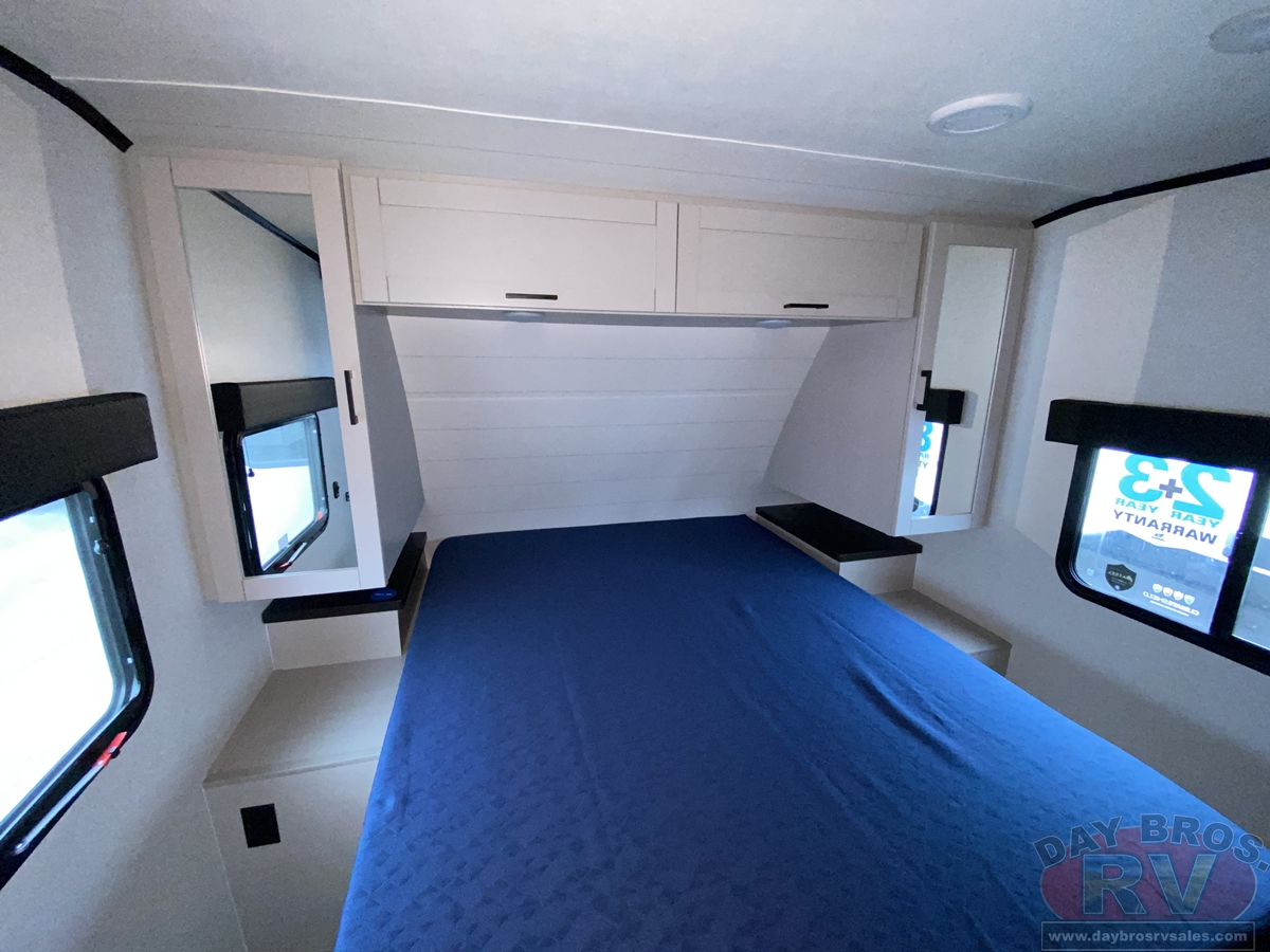 Camping has never been more comfortable than in the 2026 Jay Feather. This lightweight travel trailer is full of amentities, offers the same great interior decor you know and expect from Jayco, and a number of floorplans that are sure to fit your lifestyle. The bedroom in this RV is arguably one of the most comfortable places in the unit. For being a smaller travel trailer, its open-front bedroom features increased window sizes and 60- x 80-inch queen size bed, allowing for natural light a great walk-around space. Most Jay Feather floorplans now offer an optional 72- x 80-inch king bed; you truly will feel right at home on the road.