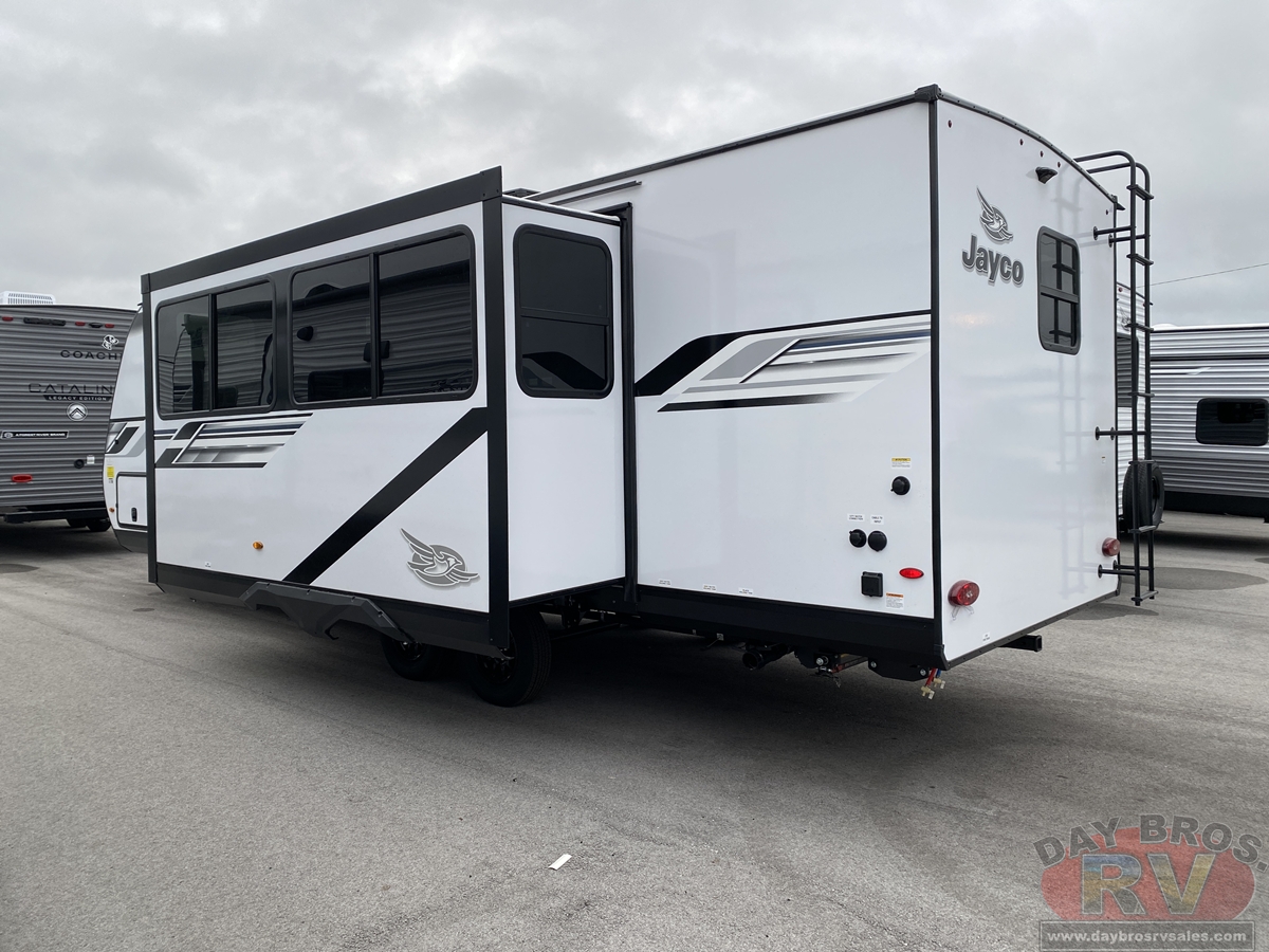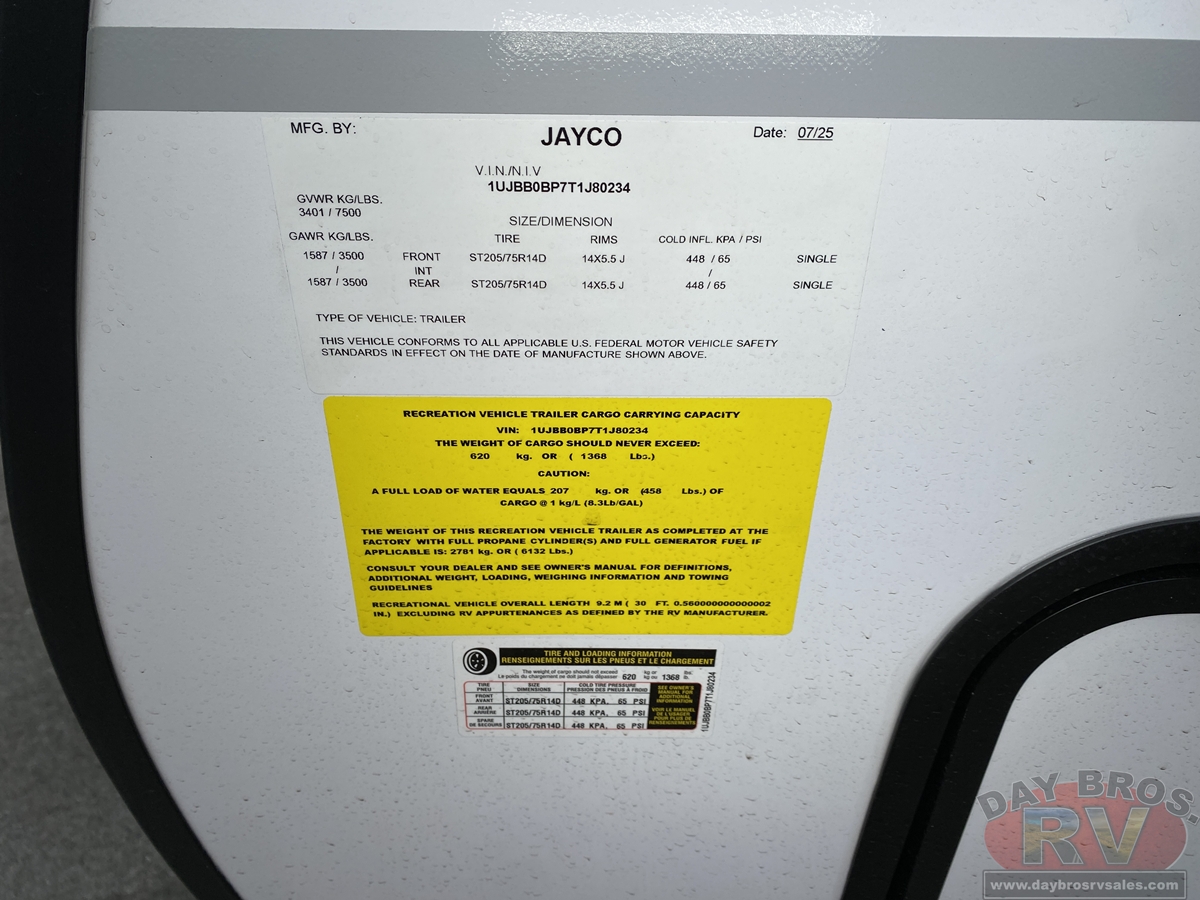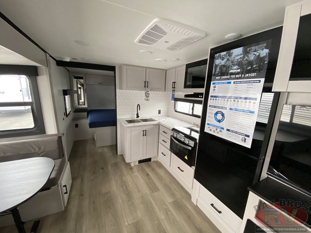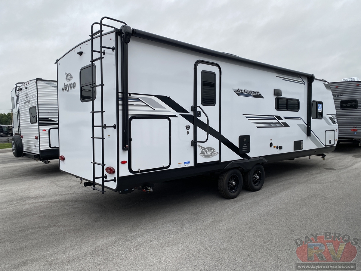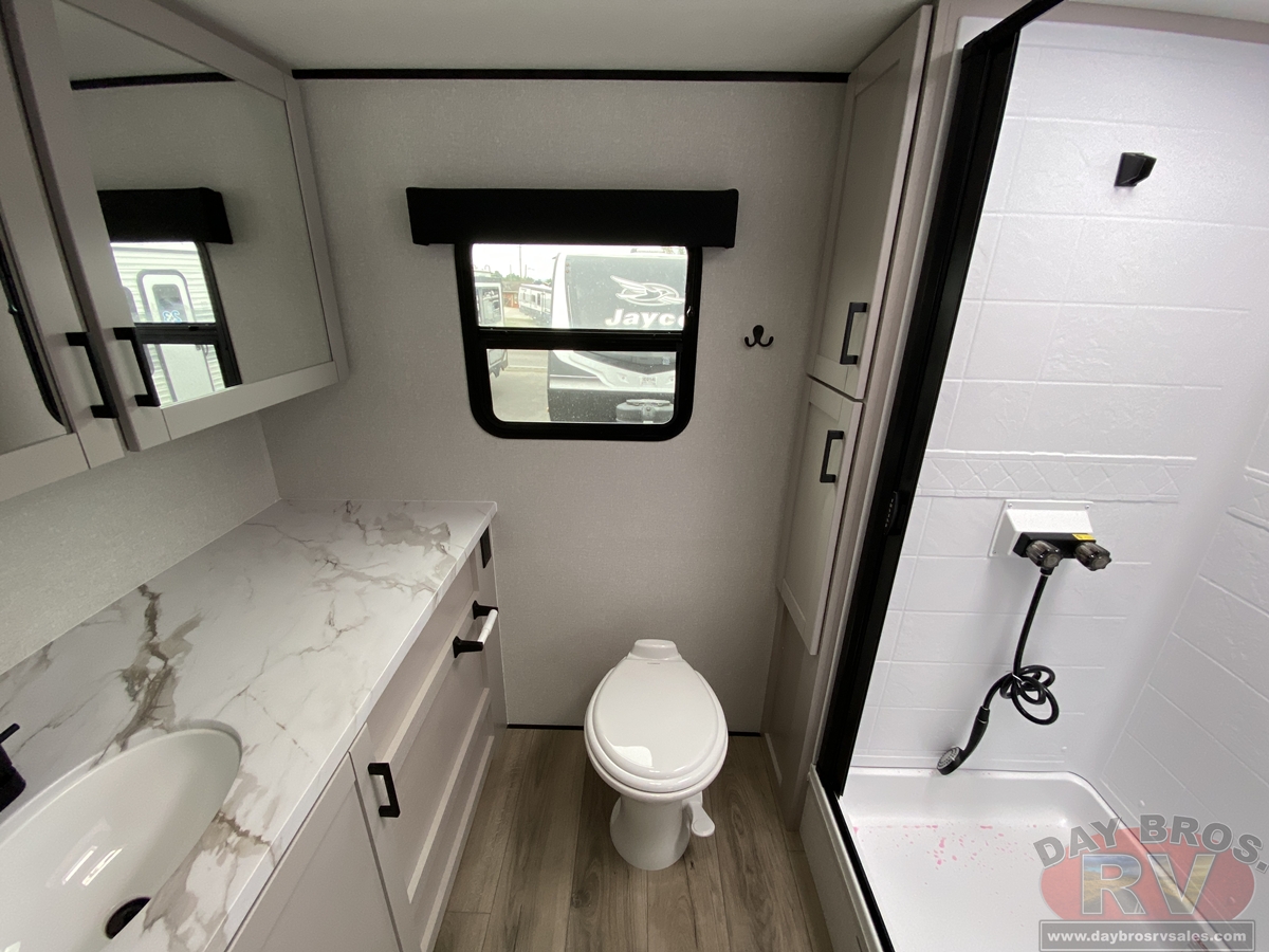 From the light interior decor, to the many standard amentities, this lightweight travel trailer is fully-equipped for all of your adventures, while offering the comforts of home. Relax, unwind and float through the day in the ever-accomodating 2026 Jay Feather Travel Trailer.