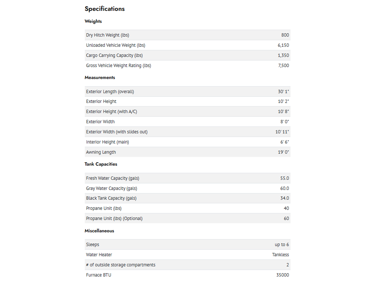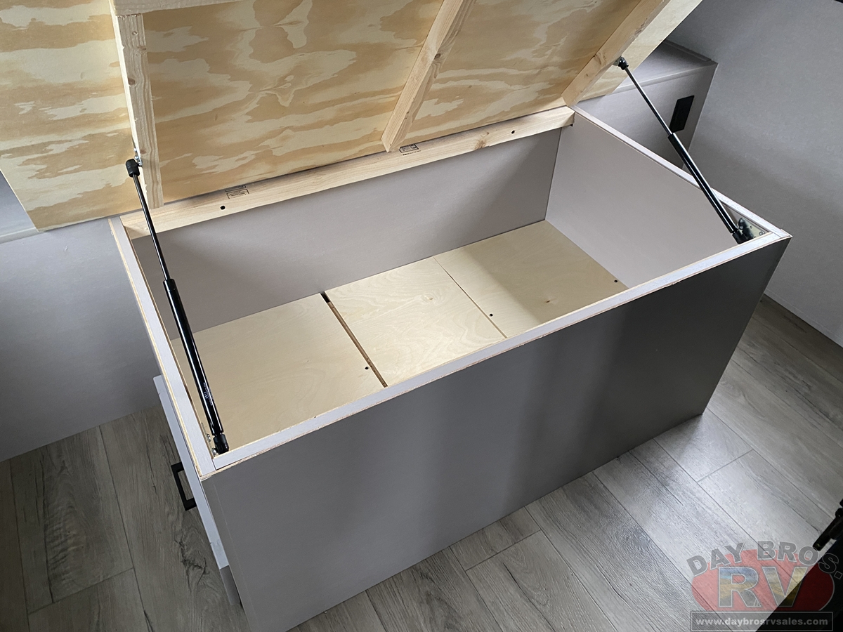 You never have to worry about running out of hot water in the Jay Feather, with the 60,000 BTU on-demand tankless water heater. The 55-gallon freshwater tank and heating element can warm up incoming water from the ground that is on average 55 degrees F.