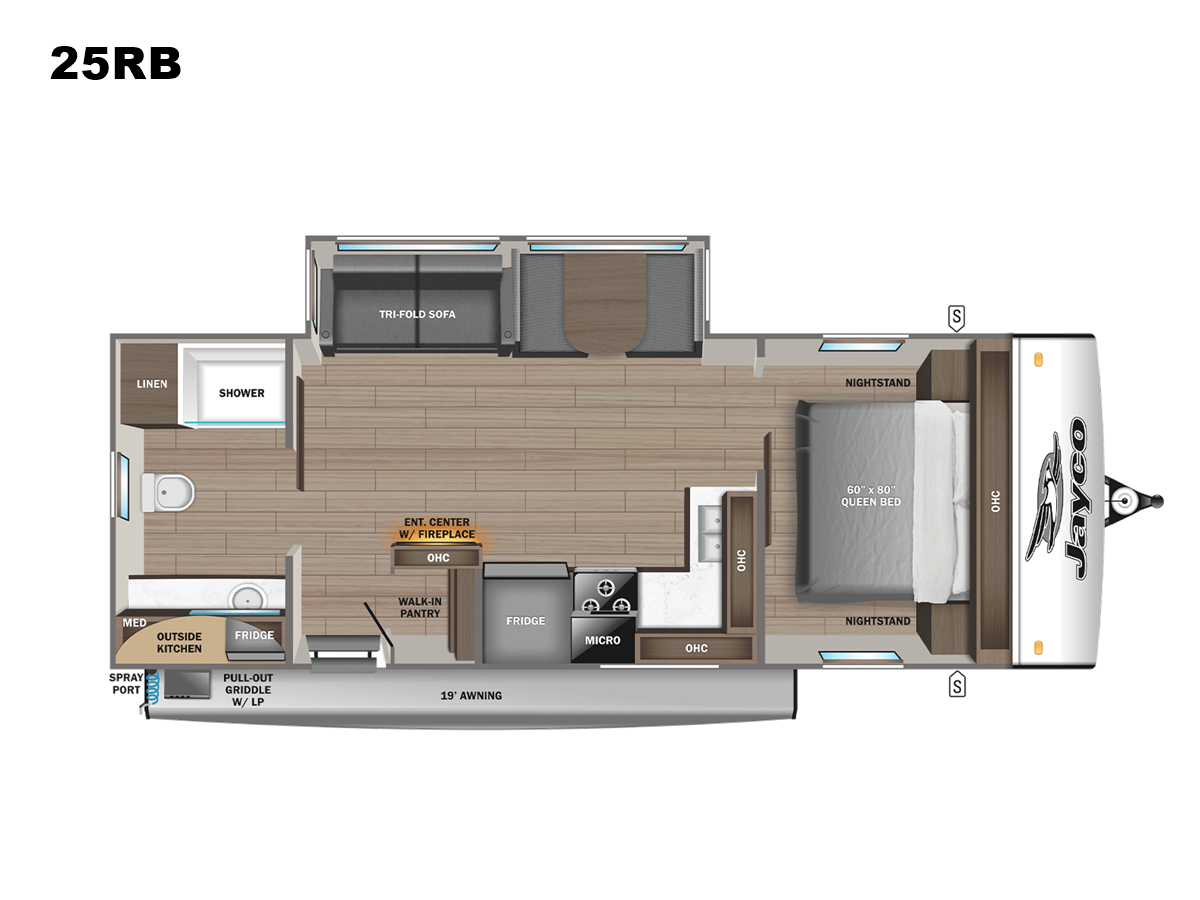 Airflow and ventilation are critical in an RV. That’s why every Jay Feather RV comes standard with a 14-inch 4-speed MaxxAir power roof vent in the main living area and standard 14-inch power roof vents in the bathroom and master bedroom. If you’re camping in a warm area where that 13,500 BTU direct-dump secondary A/C is necessary, you can feel confident knowing that all Jay Feather models are Climate Shield™ tested and approved. Radiant-barrier insulation is added to the floor, front wall and roof, and forced heat ducts run into the underbelly area where holding tanks are located. Climate Shield™ extends your camping season since the Jay Feather is tested to hold adequate ambient temperatures at 0 and 100 degrees F.