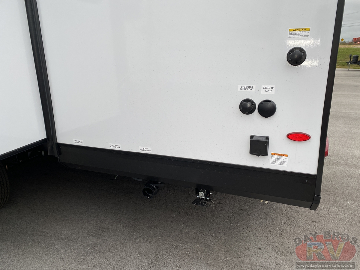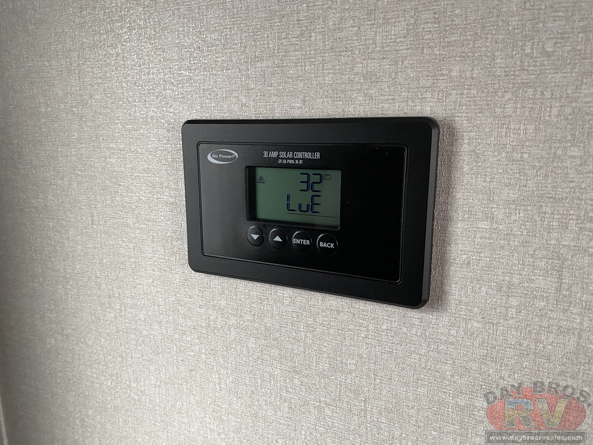 Beyond what’s immediately visible, the Jay Feather also has the new 13,500 BTU Coleman Mach Quiet Series A/C, which is more efficient and 10% quieter than other brands. That means, not only are you getting your desired temperature in your RV, but you don't have to shout over the noise of the A/C. Are you looking for a more robust A/C system? Not to worry, you can upgrade to a 15,000 BTU A/C. Most larger models come standard with 50 AMP service, allowing you to easily add a second 13,500 BTU direct-dump A/C to the master bedroom, for an even cooler sleeping space.