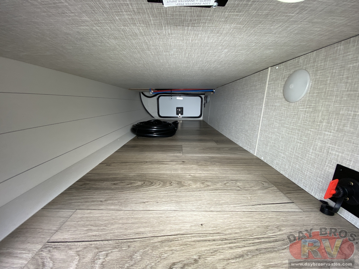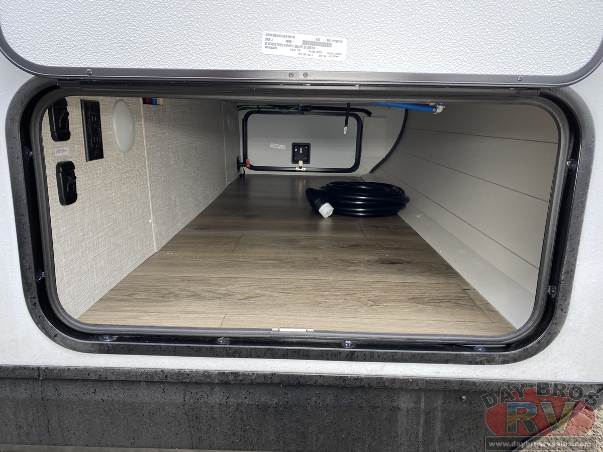 Beyond what’s immediately visible, the Jay Feather also has the new 13,500 BTU Coleman Mach Quiet Series A/C, which is more efficient and 10% quieter than other brands. That means, not only are you getting your desired temperature in your RV, but you don't have to shout over the noise of the A/C. Are you looking for a more robust A/C system? Not to worry, you can upgrade to a 15,000 BTU A/C. Most larger models are optional with 50 AMP service, allowing you to easily option a second, and even a third, 13,500 BTU direct-dump A/C for an even cooler sleeping space.
