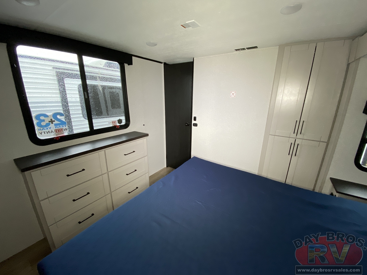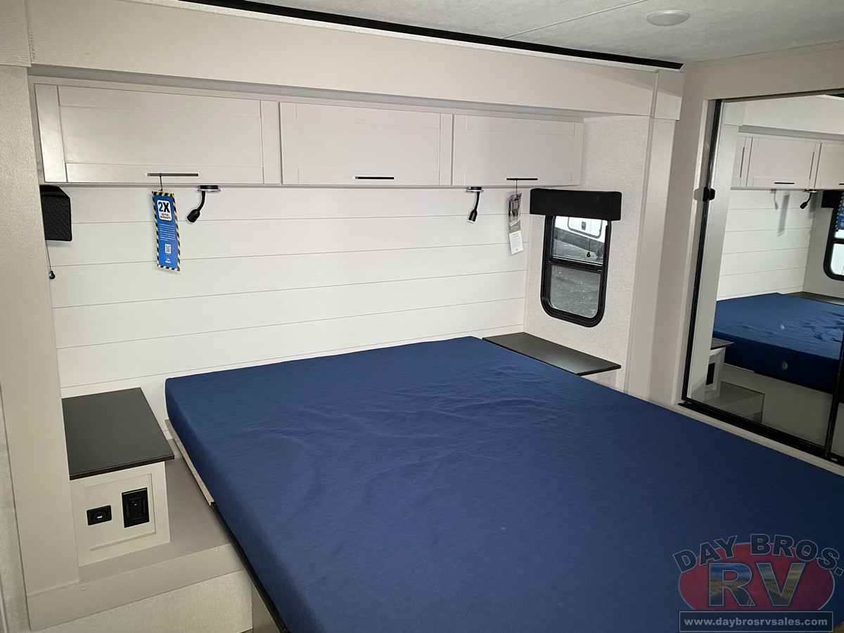 Camping has never been more comfortable than in the 2026 Jay Feather Travel Trailer. This lightweight travel trailer is full of amenities, offers the same great interior decor you know and expect from Jayco, and several floorplans that are sure to fit your lifestyle. The bedroom in this RV is arguably one of the most comfortable places in the unit. For being a smaller Travel Trailer, its open-front bedroom features increased window sizes and 60 x 80 in. queen size bed, allowing for natural light a great walk-around space. Most Jay Feather floorplans now offer an optional 72 x 80 in. king bed; you truly will feel right at home on the road.