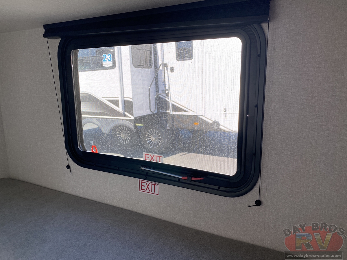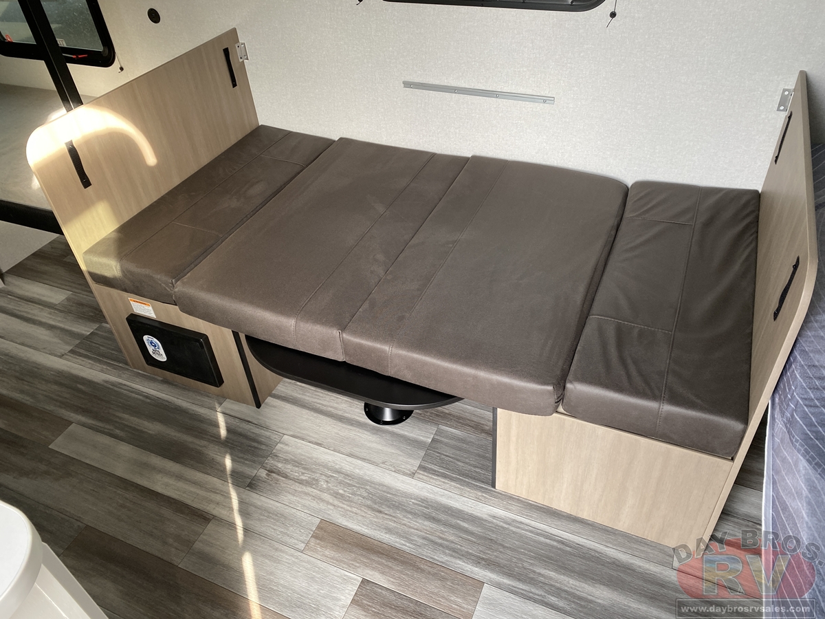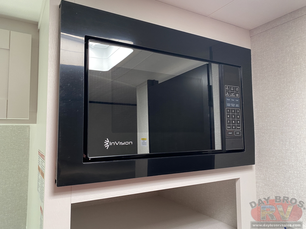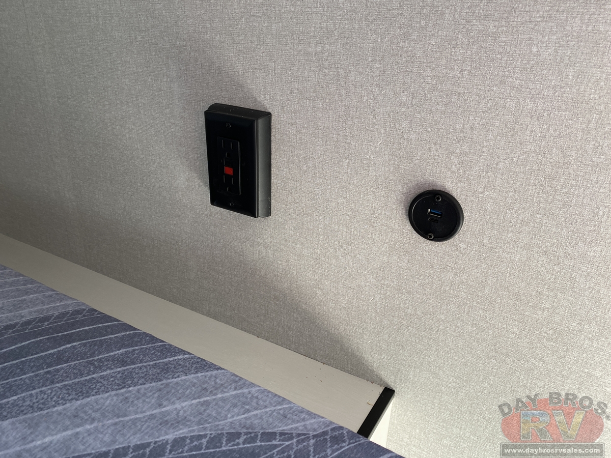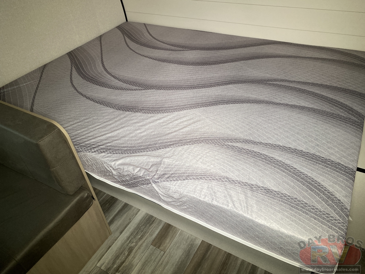 Inside, you’ll find solid hardwood cabinet doors with hidden hinges, giving the space a modern, residential feel. Oversized cabinets and under-bed storage ensure there’s room for everything you need, while the lit exterior passthrough storage makes packing and unpacking a breeze.