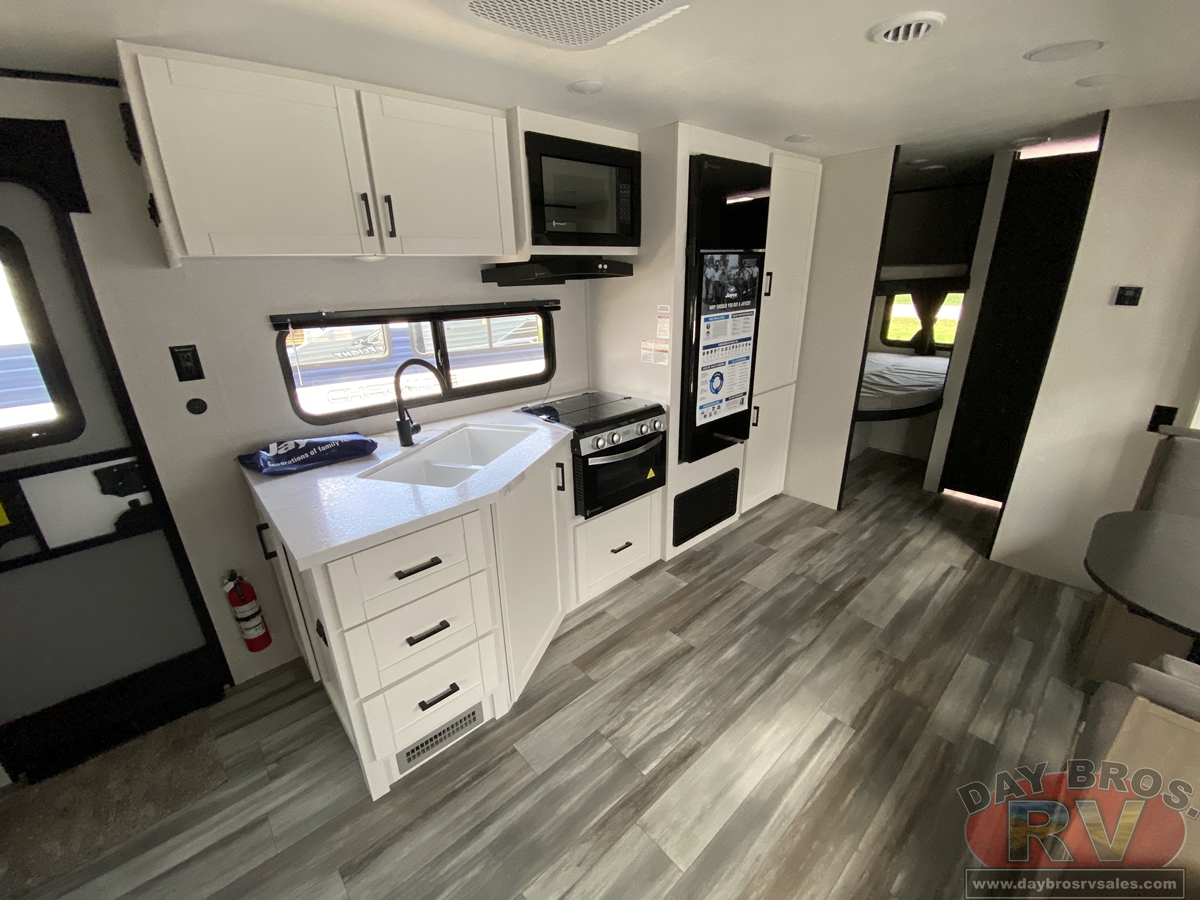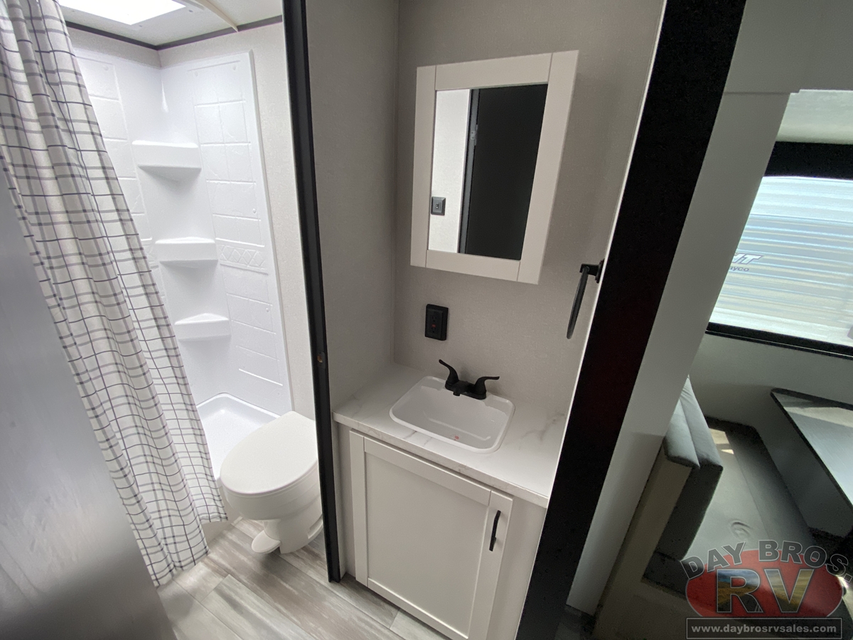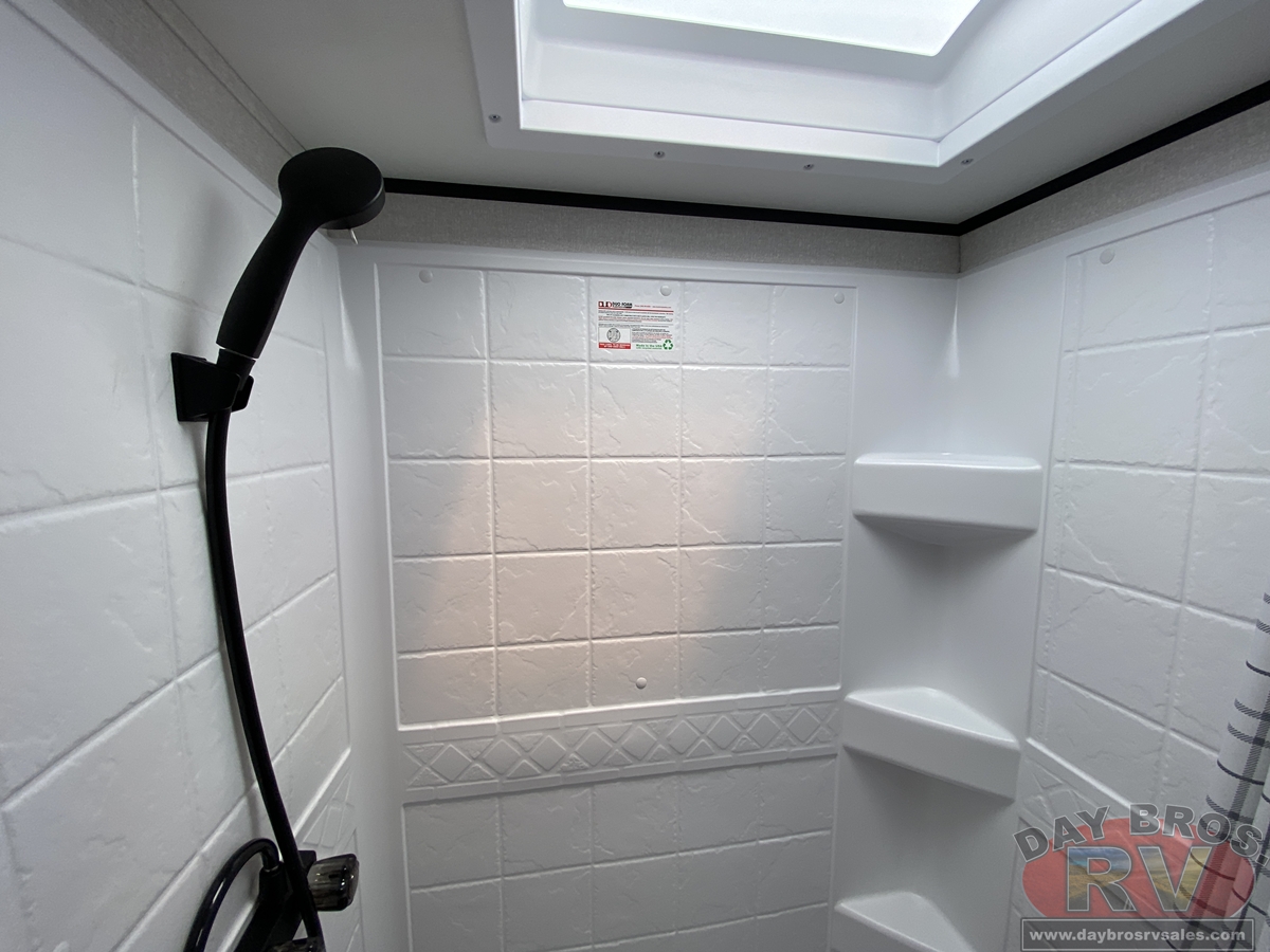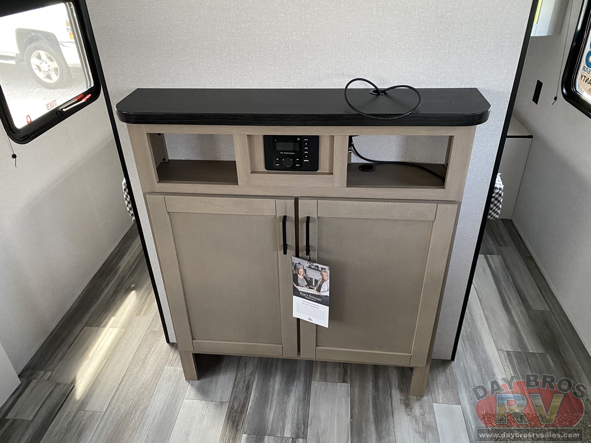 Inside, the Jay Flight SLX boasts some luxe residential features. Solid hardwood cabinet doors and drawers, with hidden cabinet hinges, offer a modern and sleek look. We continue to keep our owner's needs at the top of our mind, by offering oversized cabinets for increased storage space. In addition, you'll find maximized storage underneath the bed or bunk beds, under the dinettes, under the jack-knife sofas and even a neatly finished and lit exterior passthrough storage space. And just like our larger units, the Jay Flight SLX comes standard with a 60,000 BTU on-demand tankless water heater, for comfortable water temperatures as needed.