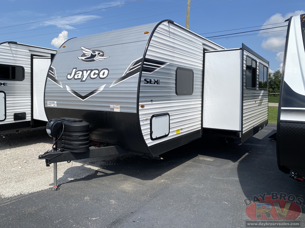Ready to explore the RV lifestyle? The Jay Flight SLX Travel Trailer has everything you need, in a compact package. With both single and double axle floorplan options, this RV offers a variety of sizes, with all of the standard amenities you've grown to love from Jayco. The Jay Flight SLX boasts an oversized freshwater tank—30-gallons for the single axle floorplans and 52-gallons for double axle SLX models (roughly 25 percent bigger than the competition). These tanks are supported by large, oversized steel bars screwed to the frame, unlike the aluminum straps you'll find elsewhere.