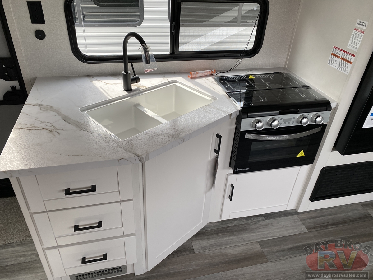 After a long day of exploring, step inside to enjoy instant hot water from the on-demand tankless water heater—up to 60,000 BTU in standard models and 42,000 BTU in the Sport Edition—so you can clean up comfortably, just like at home. Oversized G20 dark-tinted windows flood the space with natural light while blocking heat and UV rays, giving you both stunning views and added privacy.