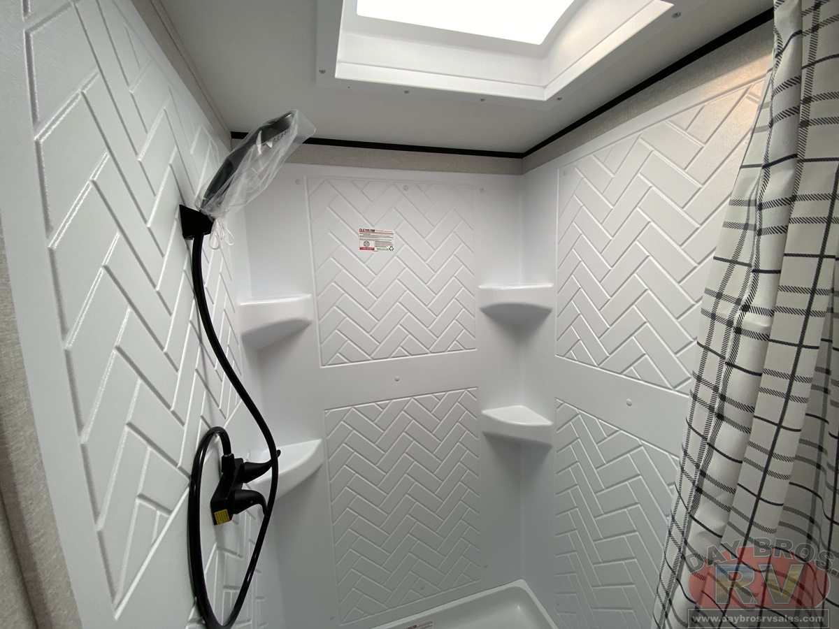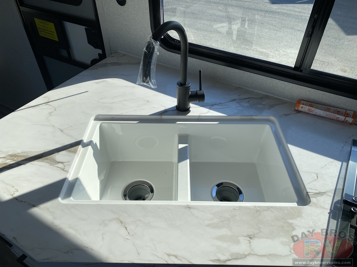 After a long day of exploring, step inside to enjoy instant hot water from the on-demand tankless water heater—up to 60,000 BTU in standard models and 42,000 BTU in the Sport Edition—so you can clean up comfortably, just like at home. Oversized G20 dark-tinted windows flood the space with natural light while blocking heat and UV rays, giving you both stunning views and added privacy.