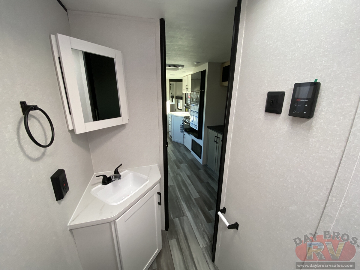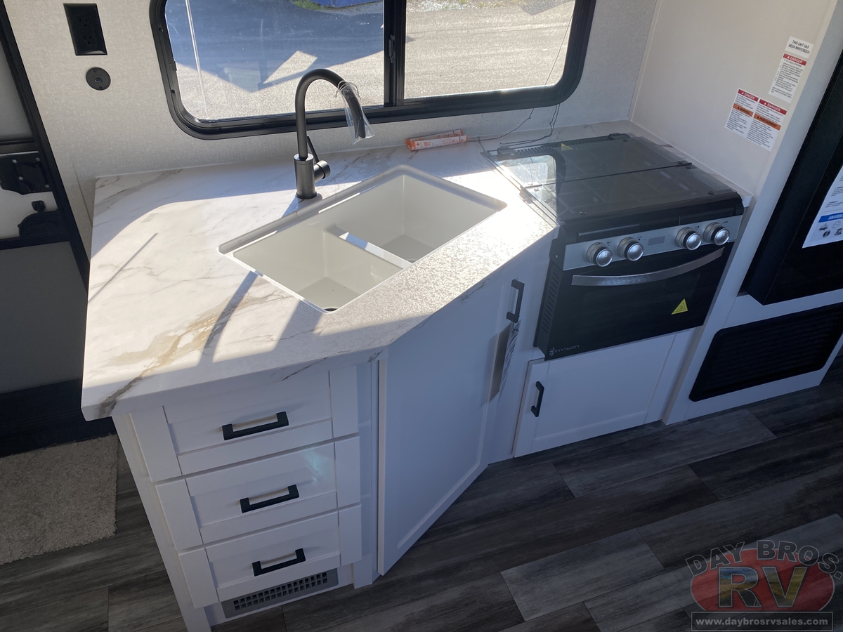 After a long day of exploring, step inside to enjoy instant hot water from the on-demand tankless water heater—up to 60,000 BTU in standard models and 42,000 BTU in the Sport Edition—so you can clean up comfortably, just like at home. Oversized G20 dark-tinted windows flood the space with natural light while blocking heat and UV rays, giving you both stunning views and added privacy.