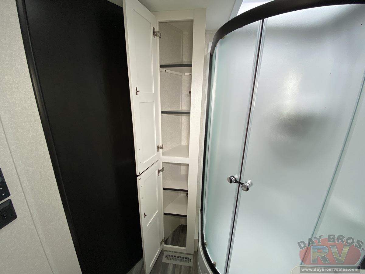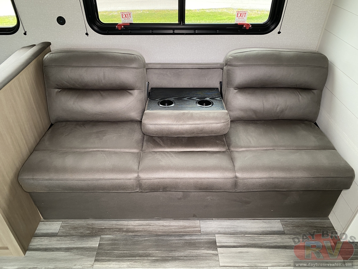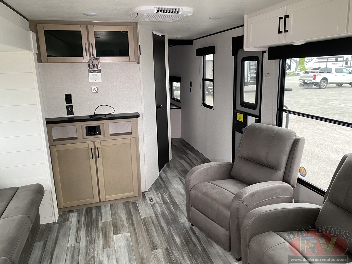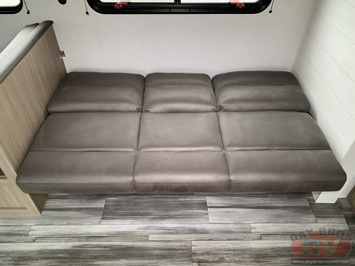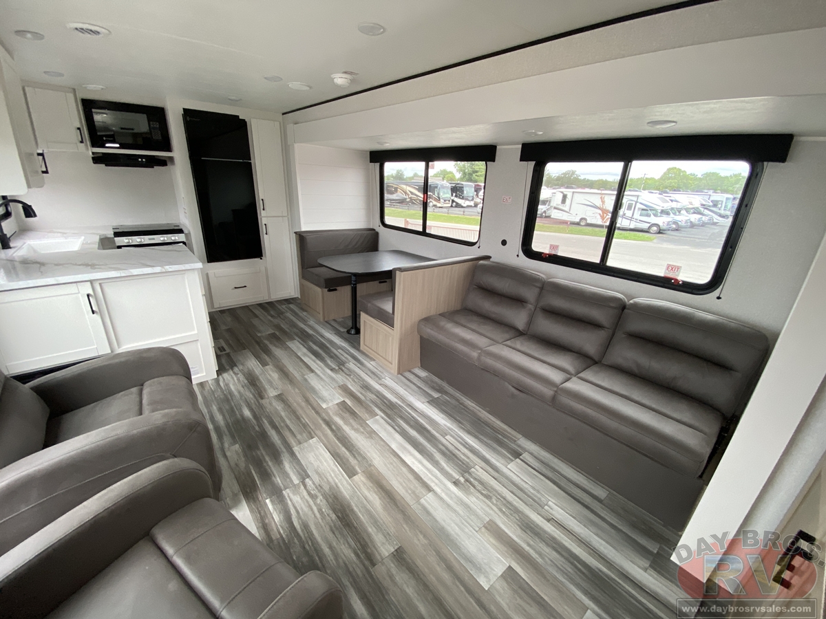 Time spent in this double slide out trailer will be time well spent! Your crew can relax on the sofa or lounge chairs, and dine at the booth dinette. A dual entry bath will create a front master bedroom you are sure to love. There is a queen bed slide out here, along with a front wardrobe, a dresser, plus washer and dryer prep. The rear kitchen includes ample counter space, all the appliances to create meals, and a pantry for snacks.