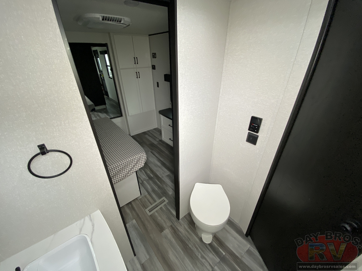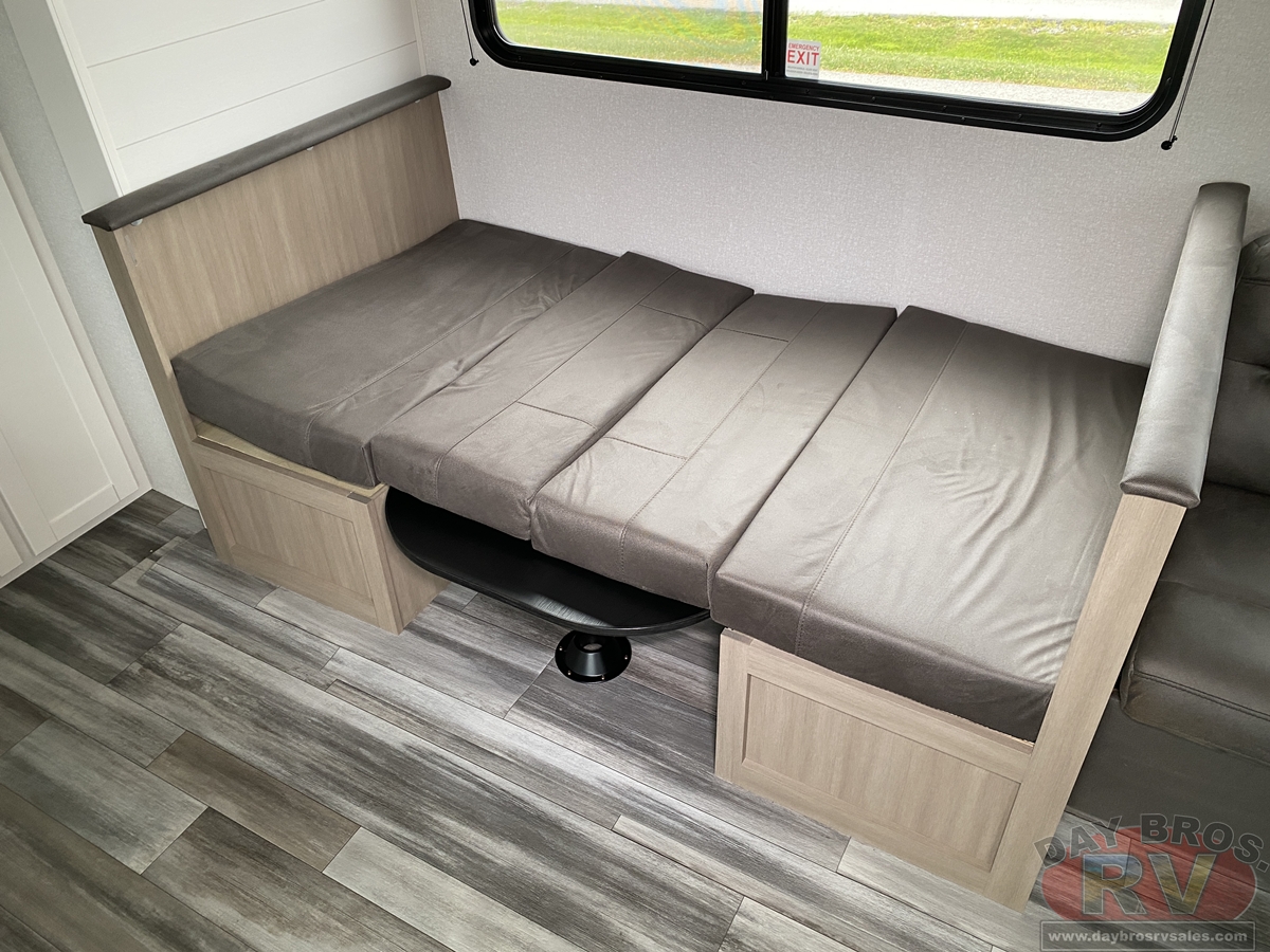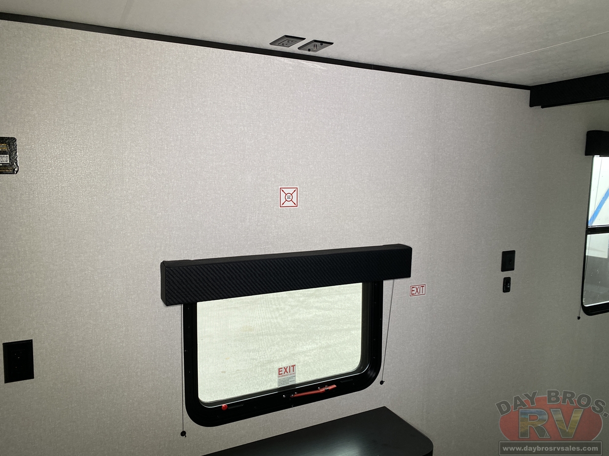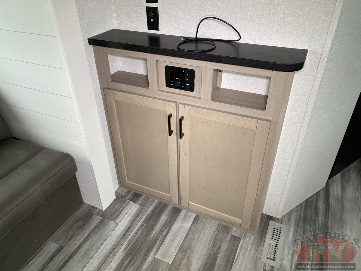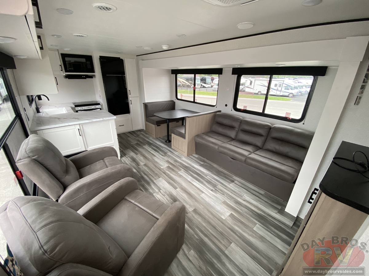 Time spent in this double slide out trailer will be time well spent! Your crew can relax on the sofa or lounge chairs, and dine at the booth dinette. A dual entry bath will create a front master bedroom you are sure to love. There is a queen bed slide out here, along with a front wardrobe, a dresser, plus washer and dryer prep. The rear kitchen includes ample counter space, all the appliances to create meals, and a pantry for snacks.