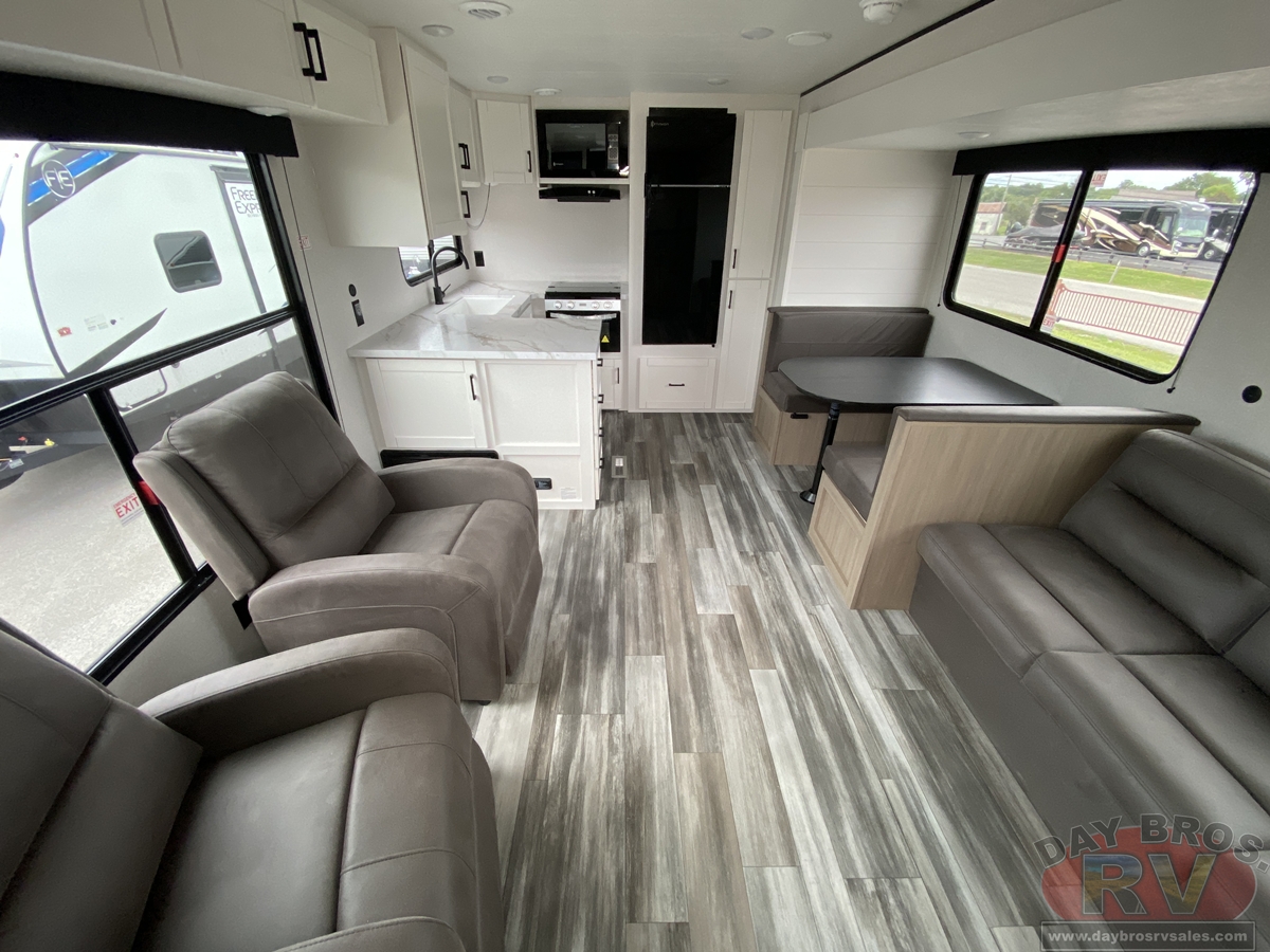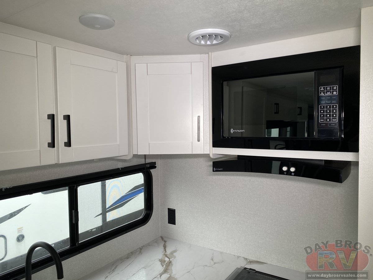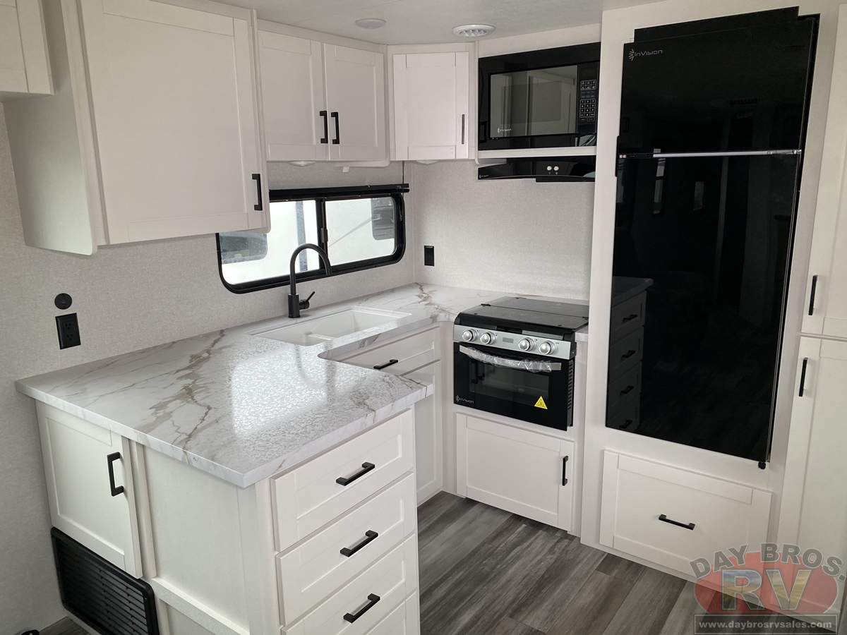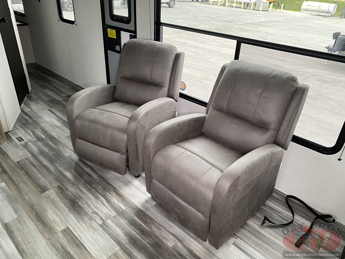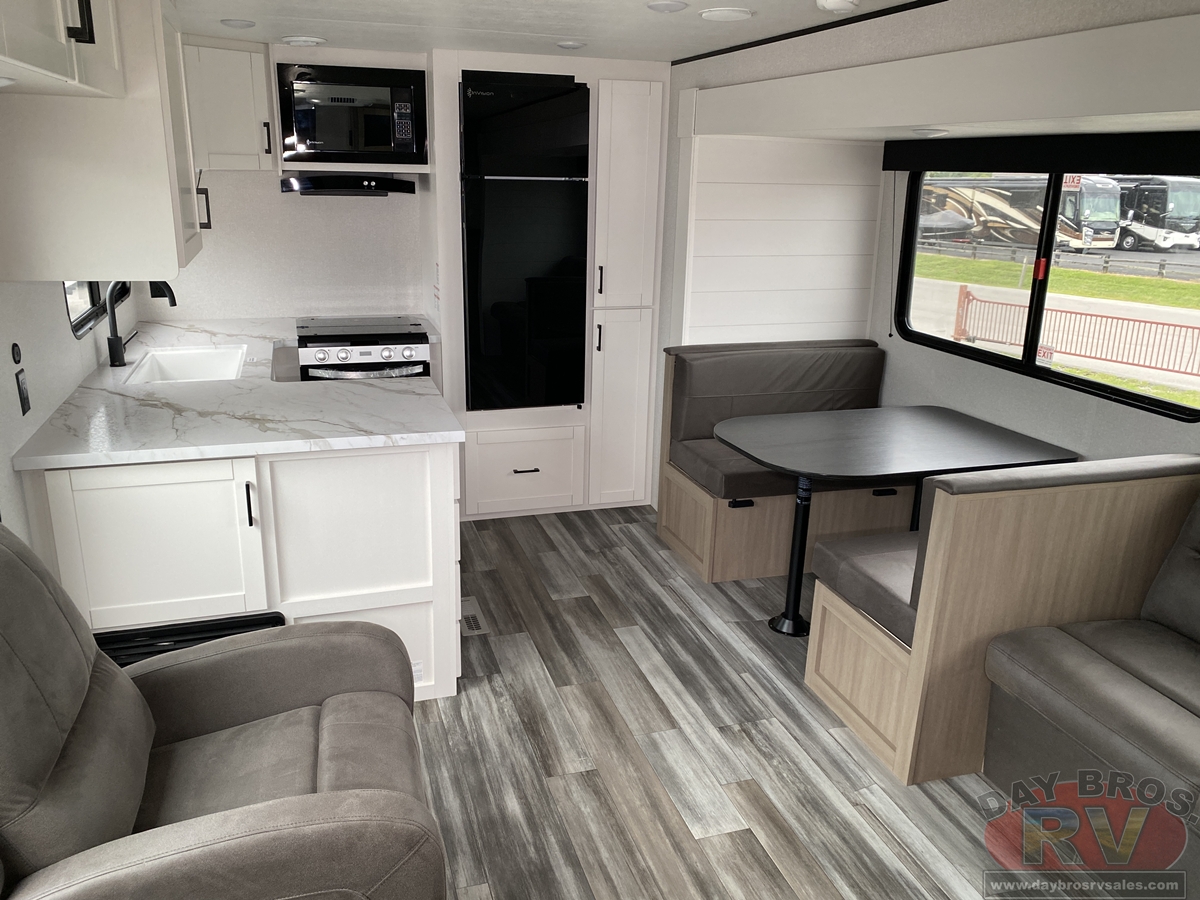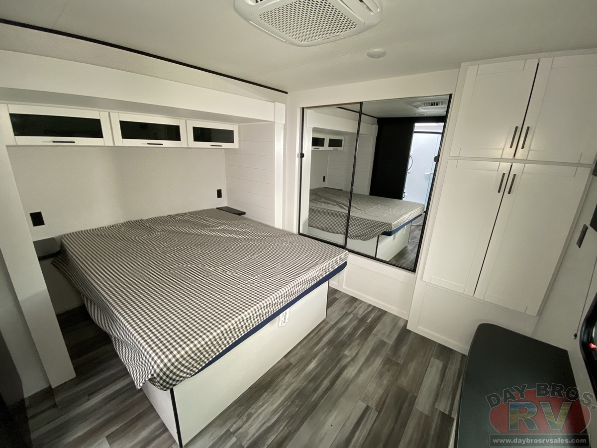 Time spent in this double slide out trailer will be time well spent! Your crew can relax on the sofa or lounge chairs, and dine at the booth dinette. A dual entry bath will create a front master bedroom you are sure to love. There is a queen bed slide out here, along with a front wardrobe, a dresser, plus washer and dryer prep. The rear kitchen includes ample counter space, all the appliances to create meals, and a pantry for snacks.