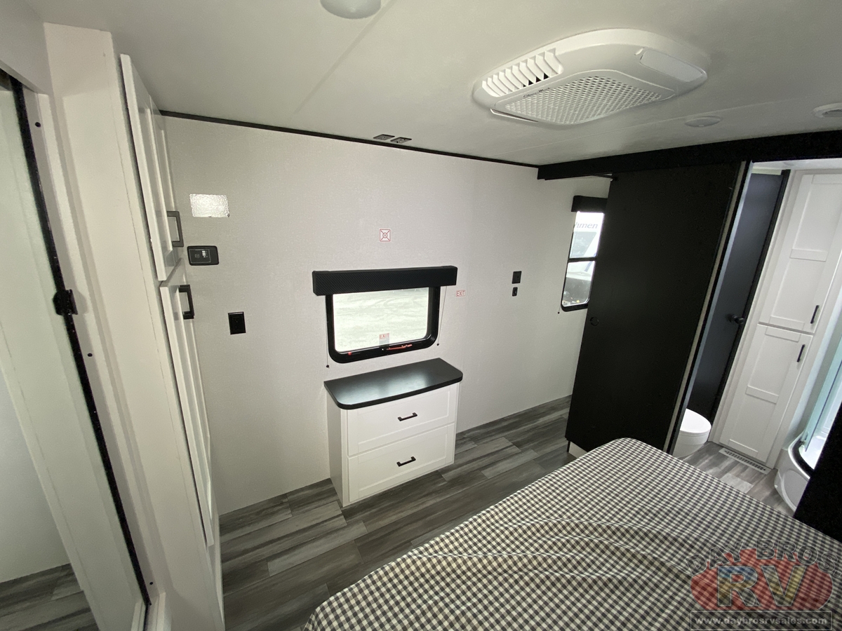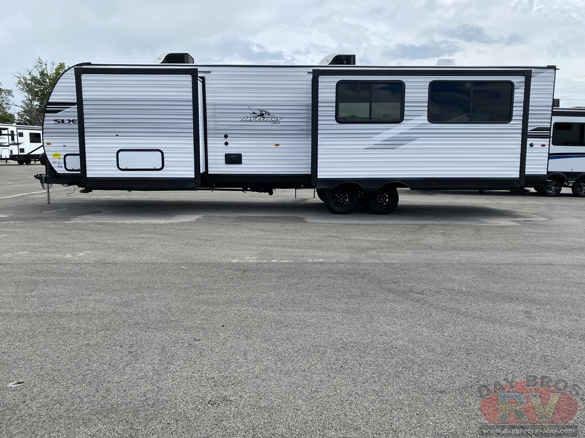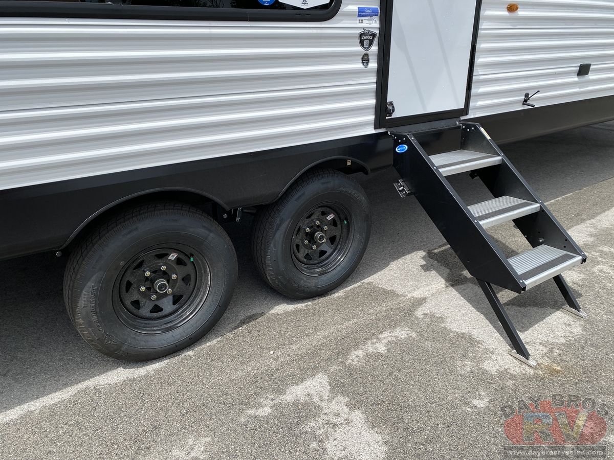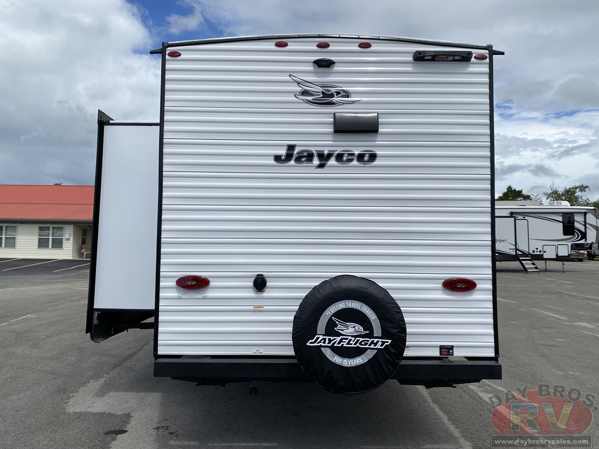 The Jayco Jay Flight SLX travel trailer is quite easy to own because it is lightweight for an easier towing experience. Built on a fully integrated A-frame with galvanized-steel, impact-resistant wheel wells, the Jay Flight SLX has quality at its very foundation. That quality continues on to the electric self-adjusting brakes, easy-lube hubs, Magnum Truss roof system, and LP quick connect. Some of what the mandatory Customer Value Package includes is backup camera prep, Keyed-Alike entry and baggage doors, and an on-demand tankless water heater.