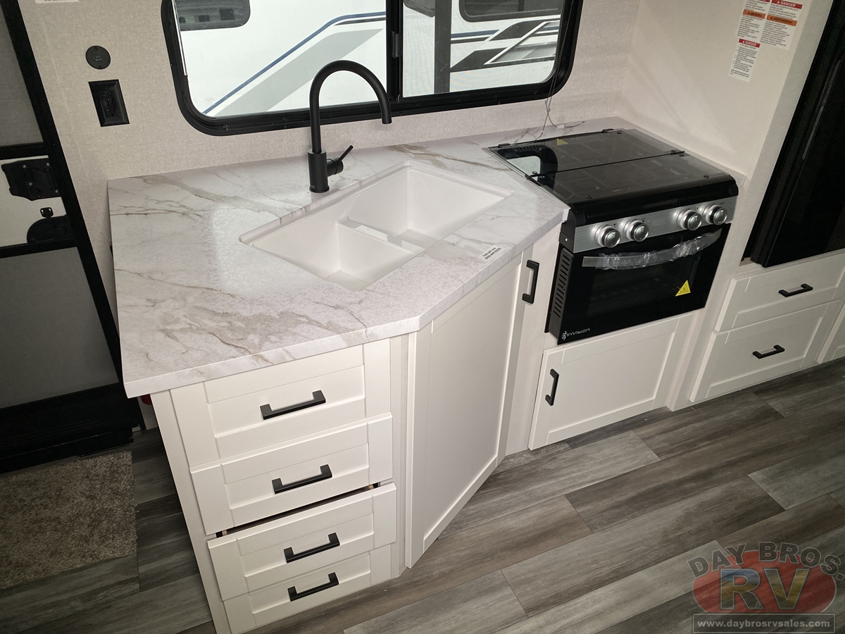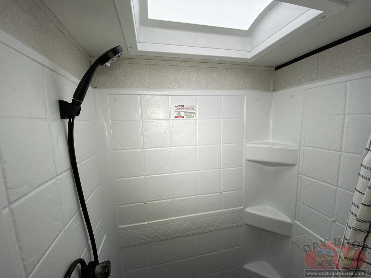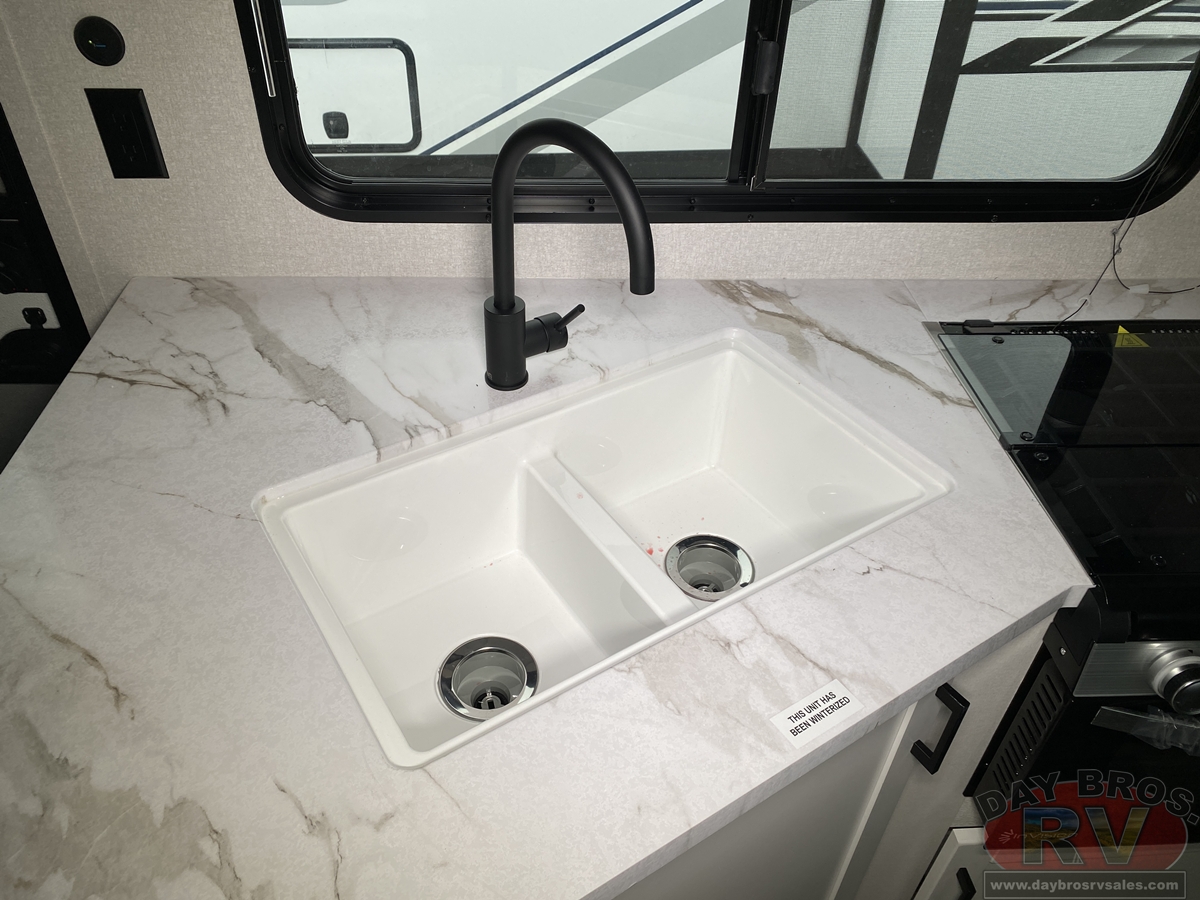 After a long day of exploring, step inside to enjoy instant hot water from the on-demand tankless water heater—up to 60,000 BTU in standard models and 42,000 BTU in the Sport Edition—so you can clean up comfortably, just like at home. Oversized G20 dark-tinted windows flood the space with natural light while blocking heat and UV rays, giving you both stunning views and added privacy.