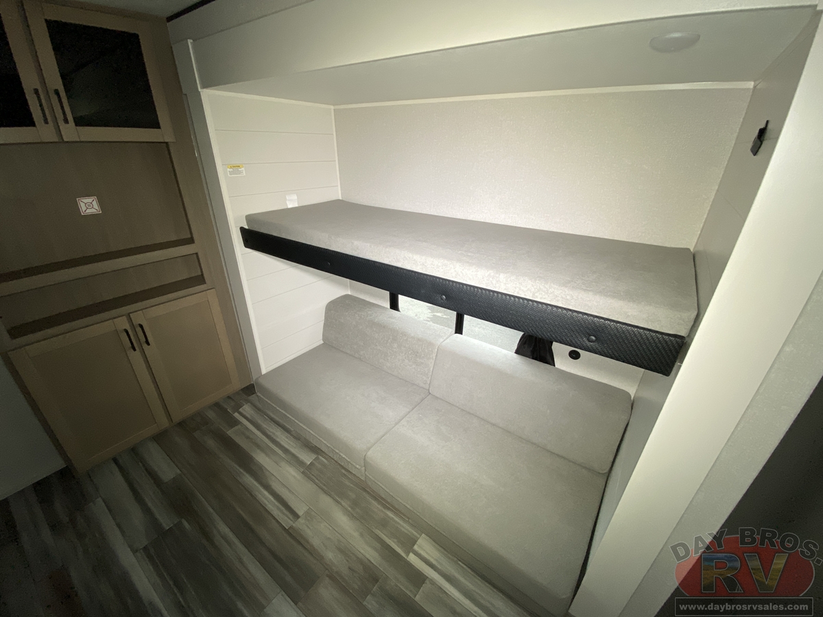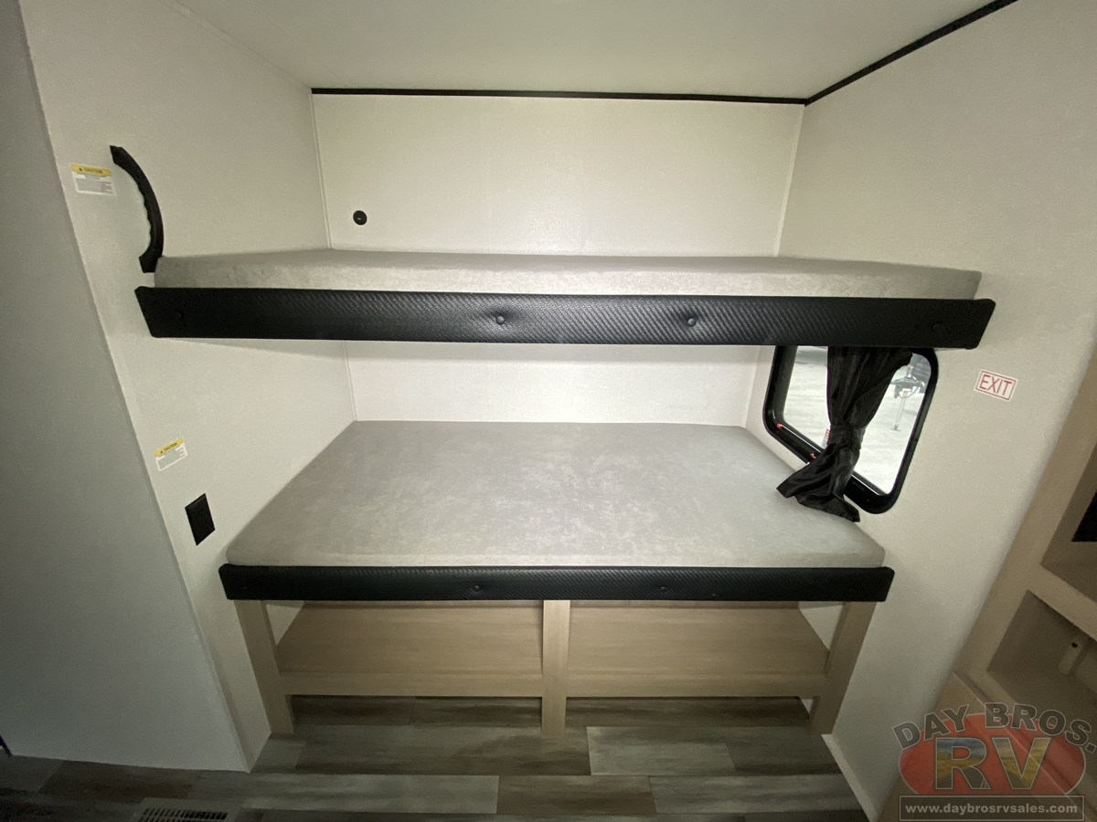 The bunks are another place on the Jay Flight SLX where the design prevents wear and tear over time. Jayco has the largest travel trailer bunk weight capacity in the industry (300 lb. weight capacity for a single bunk and a 600-lb. for double bunks). You can safely and soundly use these for sleeping arrangements, or as extra space for storage.