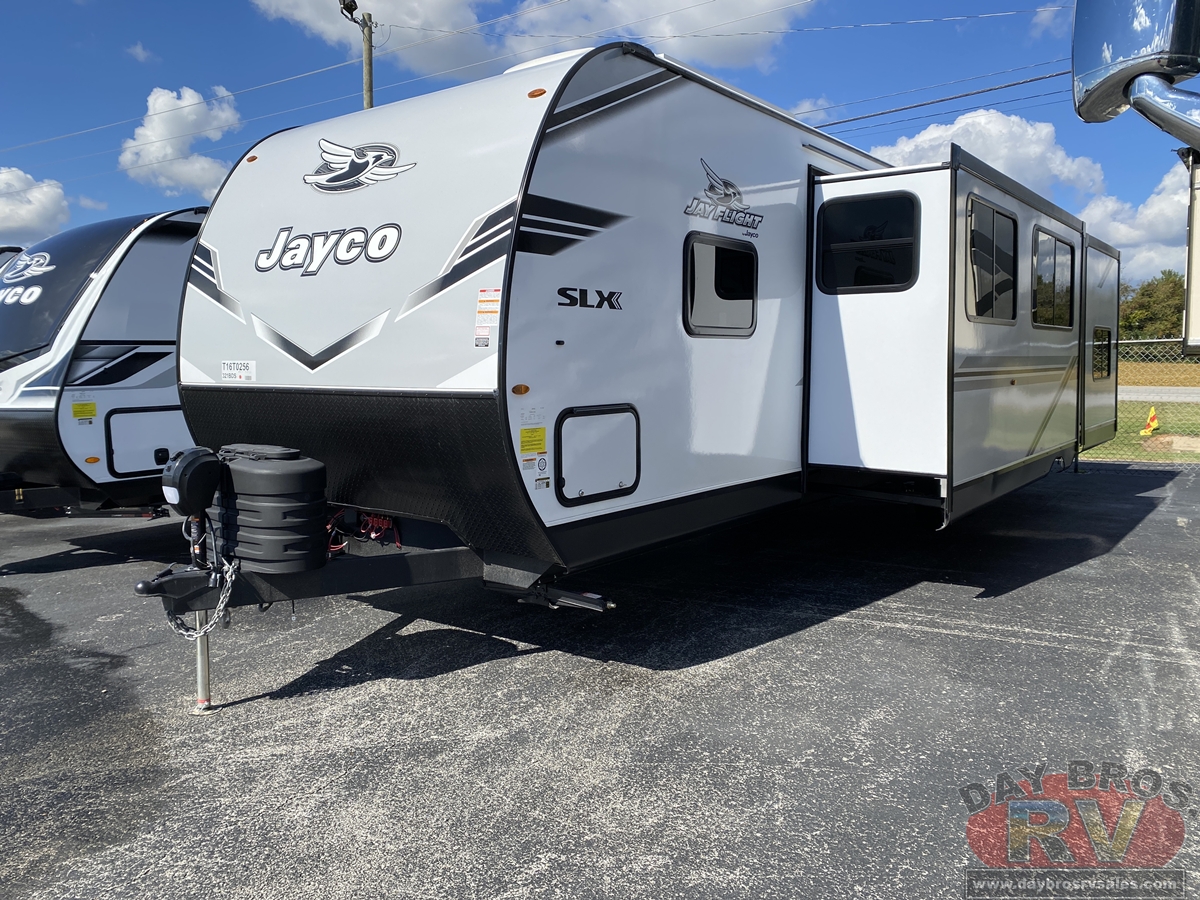 Ready to explore the RV lifestyle? The Jay Flight SLX Travel Trailer has everything you need, in a compact package. With both single and double axle floorplan options, this RV offers a variety of sizes, with all of the standard amenities you've grown to love from Jayco. The Jay Flight SLX boasts an oversized freshwater tank—30-gallons for the single axle floorplans and 52-gallons for double axle SLX models (roughly 25 percent bigger than the competition). These tanks are supported by large, oversized steel bars screwed to the frame, unlike the aluminum straps you'll find elsewhere.