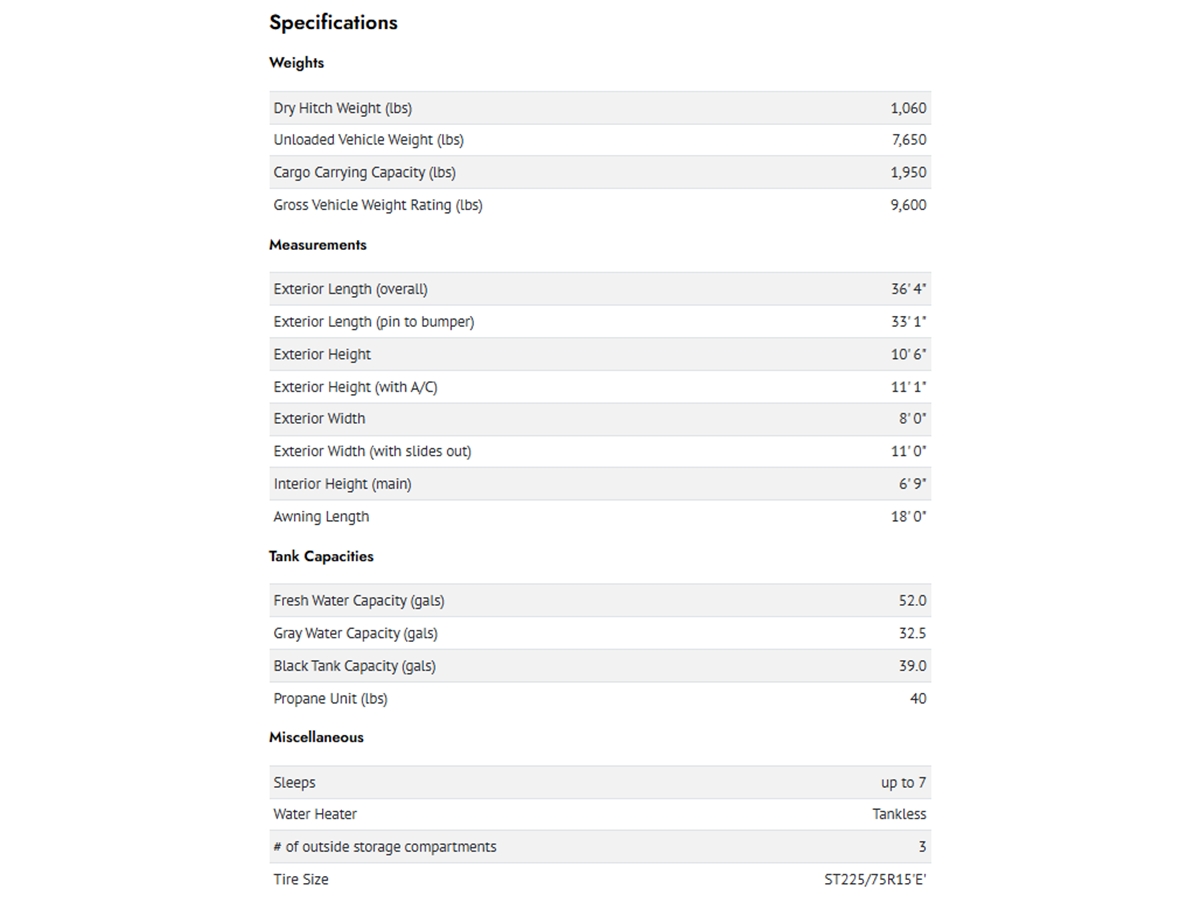 Whether you're bringing the family or just extra gear, industry-leading bunk weight capacities (300 lbs. for single bunks, 600 lbs. for doubles) mean you can sleep soundly or store your essentials with confidence.