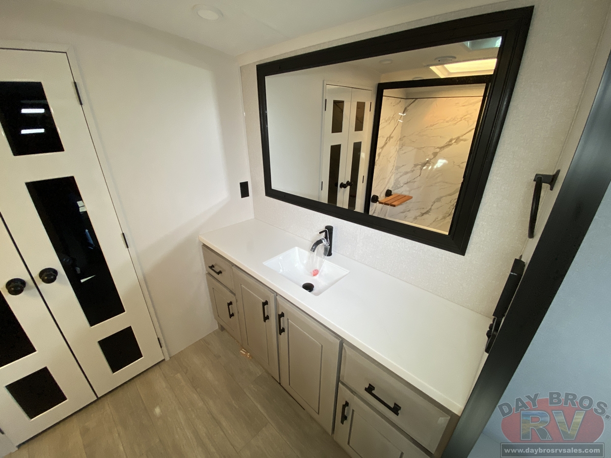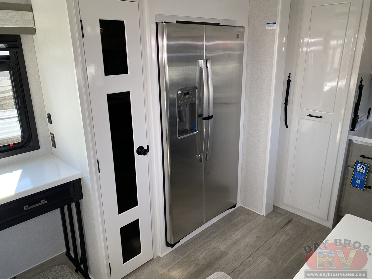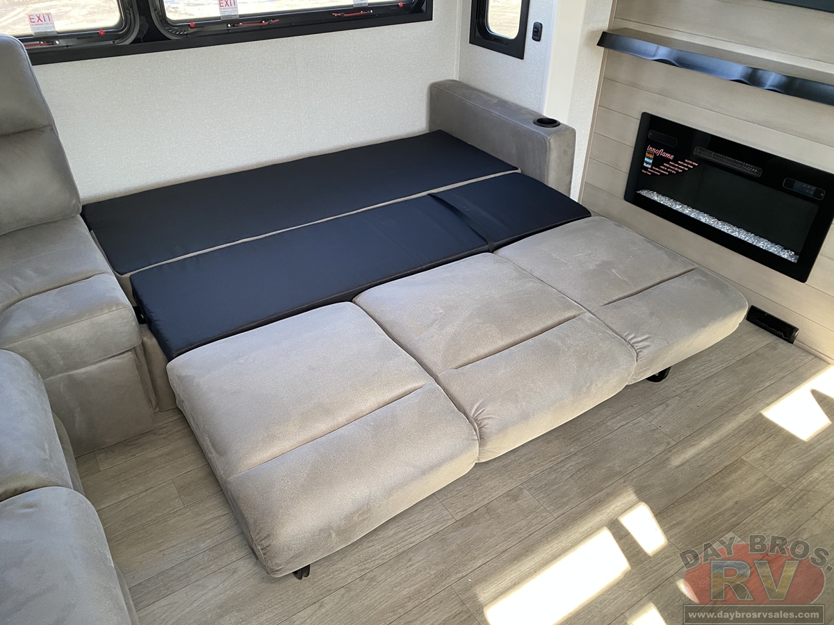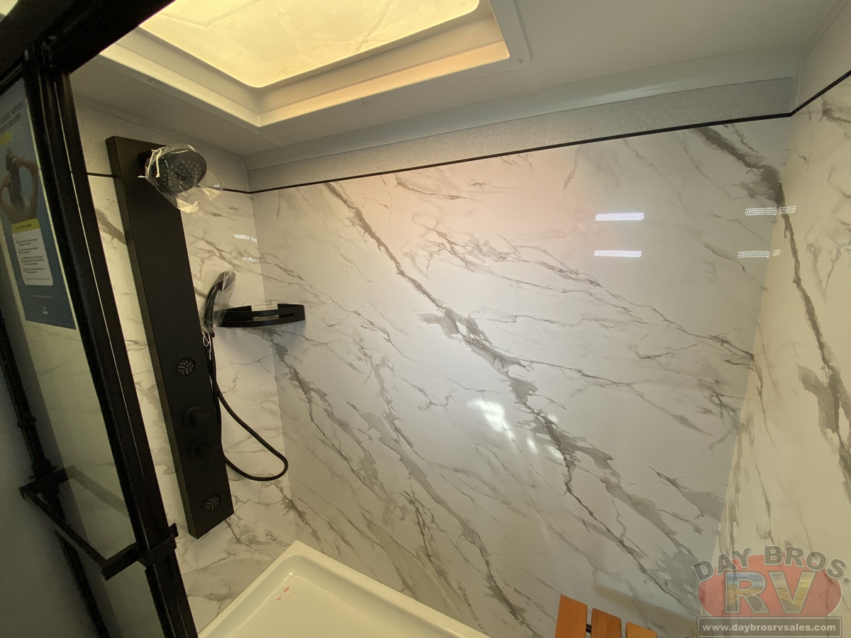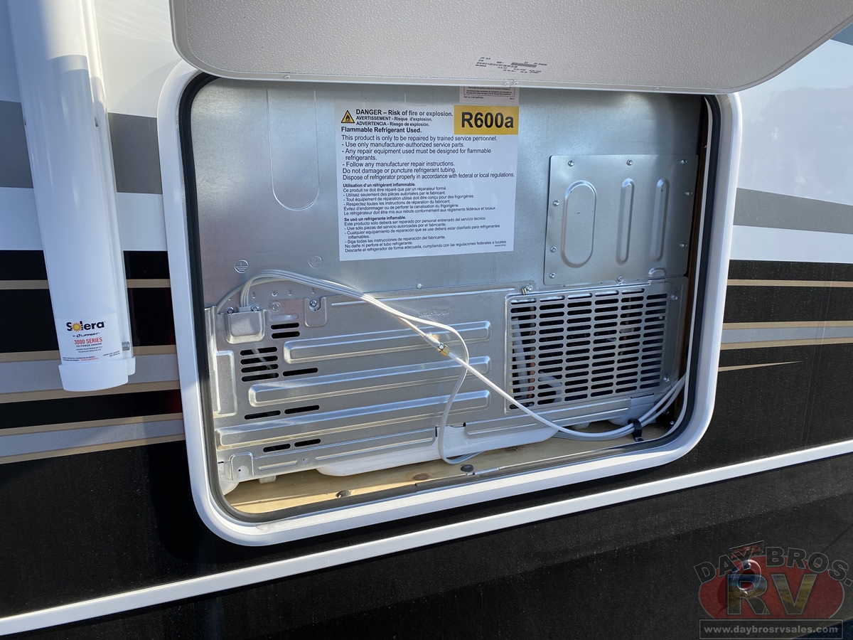 Step inside and experience the Jayco difference. From handcrafted solid hardwood maple cabinetry to sleek solid-surface countertops, every detail reflects intentional design and superior build quality. GE’s premium kitchen suite includes a 21 cu. ft. residential refrigerator, a 30 in. convection microwave with built-in air fryer, and a 24 in. high-output range—along with an available built-in dishwasher and extended bar top for effortless entertaining.