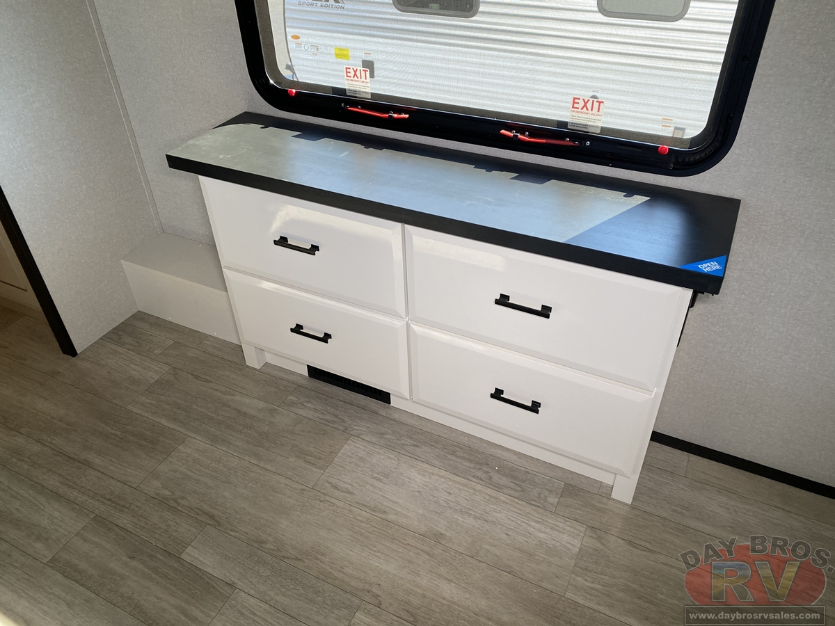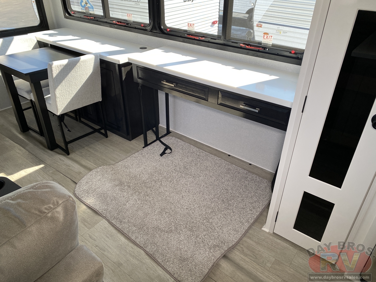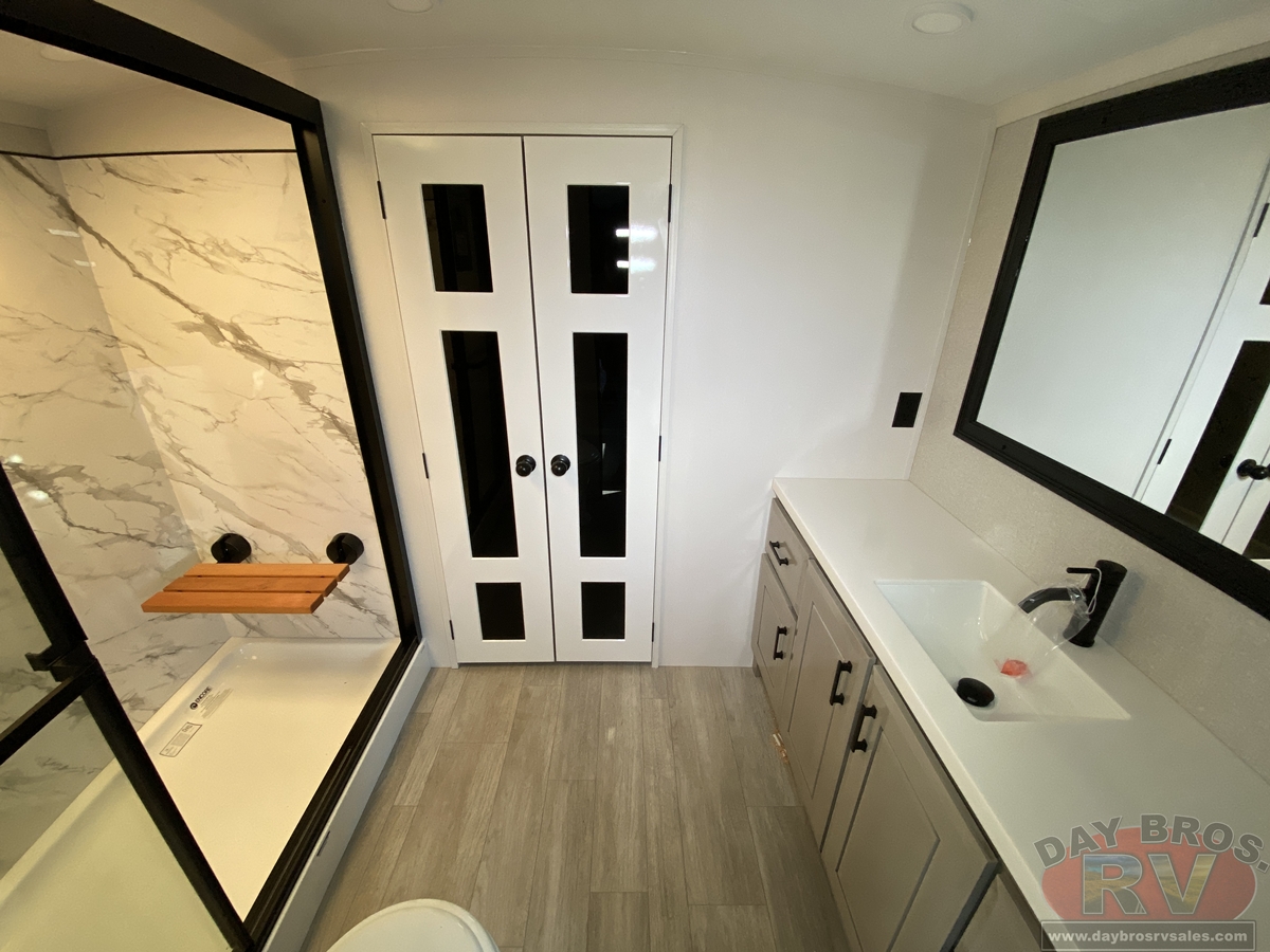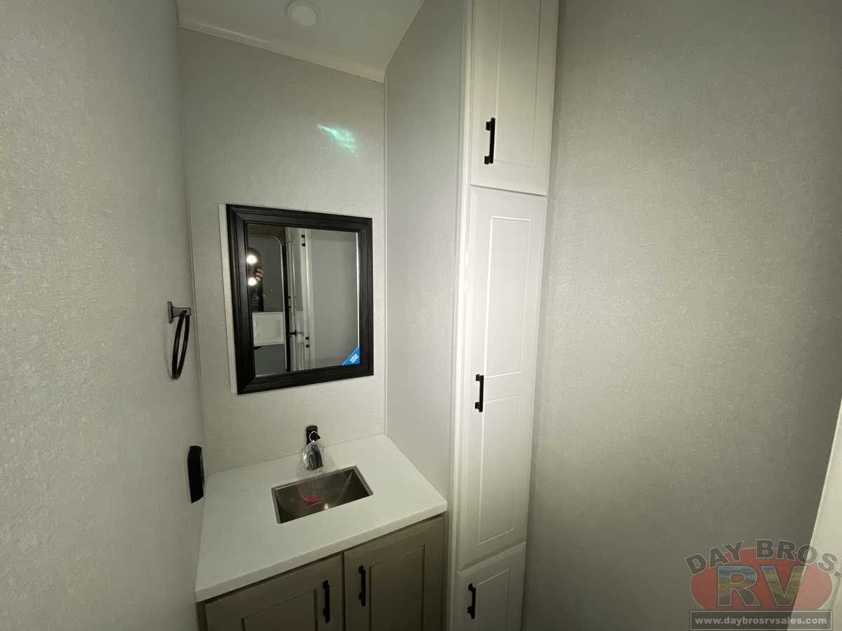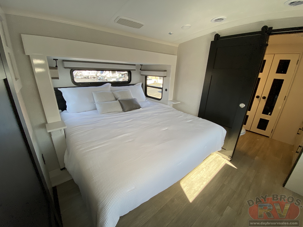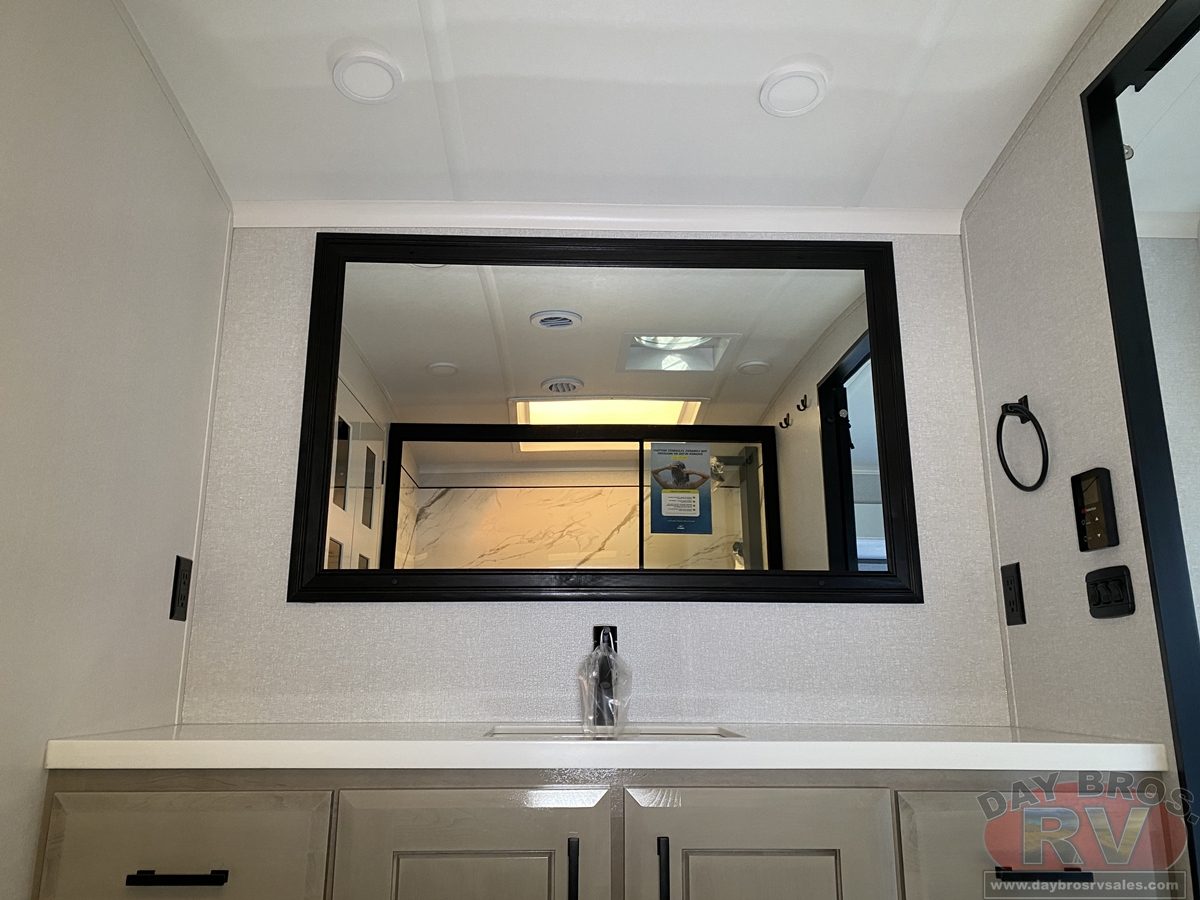 Step inside and experience the Jayco difference. From handcrafted solid hardwood maple cabinetry to sleek solid-surface countertops, every detail reflects intentional design and superior build quality. GE’s premium kitchen suite includes a 21 cu. ft. residential refrigerator, a 30 in. convection microwave with built-in air fryer, and a 24 in. high-output range—along with an available built-in dishwasher and extended bar top for effortless entertaining.