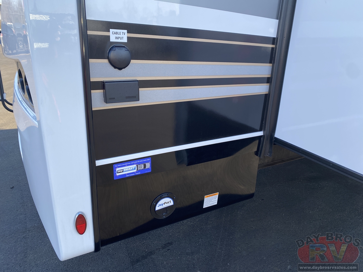 Technology and convenience are built into every corner. JAYCOMMAND® puts control of key systems at your fingertips, while the exclusive NuvoH2O Water Purification System delivers fresh, scale-free water at every faucet—ideal for both dry camping and full hook-up sites. With its salt-free citrus filtration, NuvoH2O helps protect plumbing and appliances while keeping your skin and water cleaner.