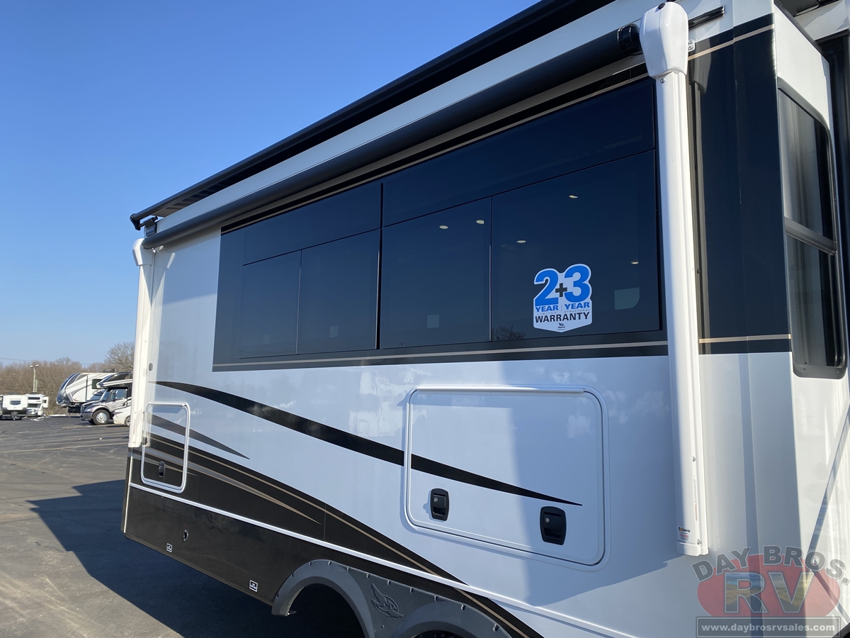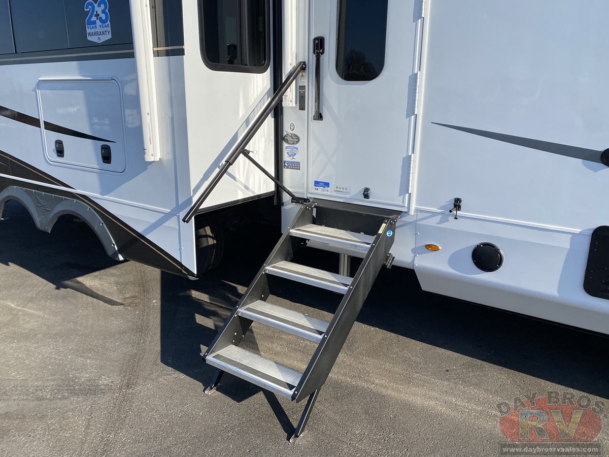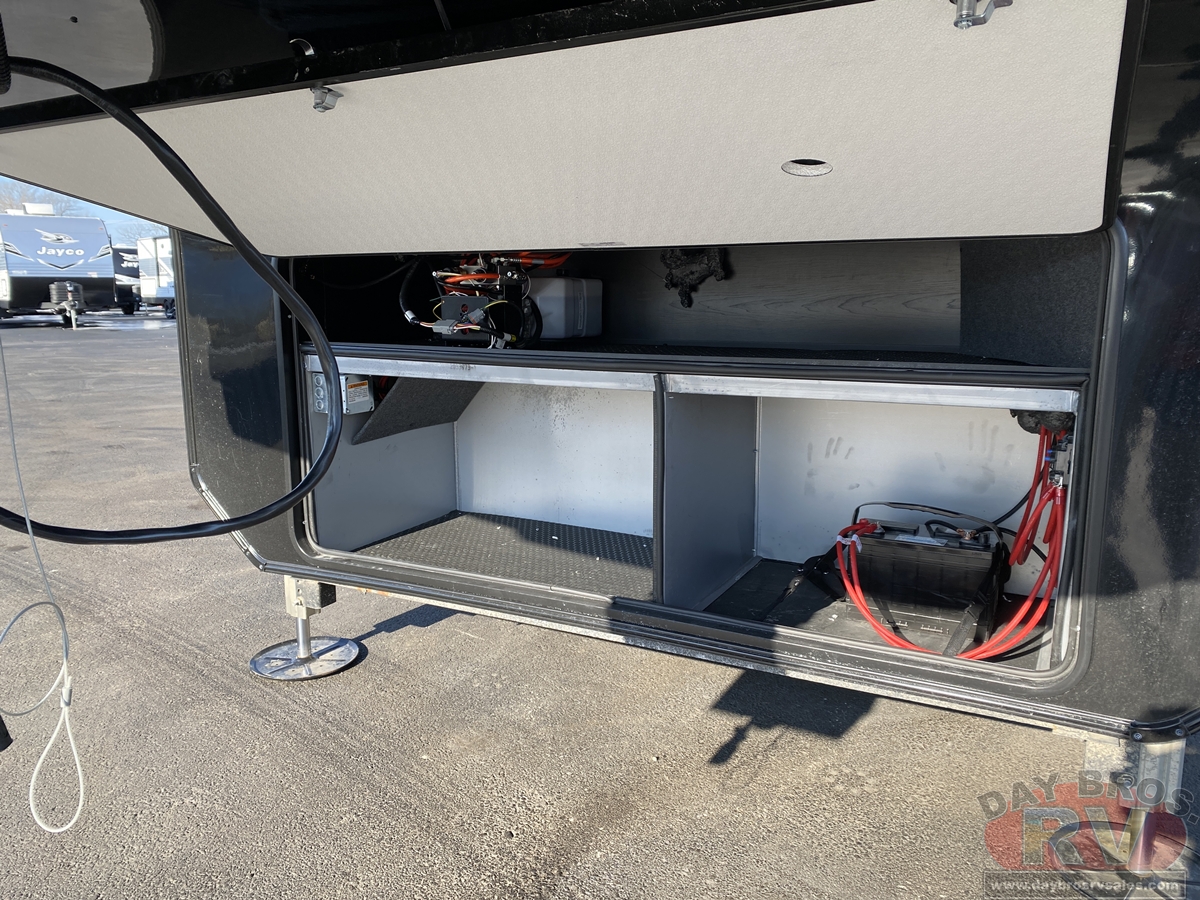 A 102-inch wide-body foundation, 120 lbs. of LP capacity, a 3,000 lb. rear tow hitch and massive pass-through storage with Slam-latch™ doors add real-world function to Pinnacle’s luxurious form. Backed by Stronghold VBL™ laminated walls and JaySMART™ safety lighting, it’s as durable and dependable as it is elegant.
