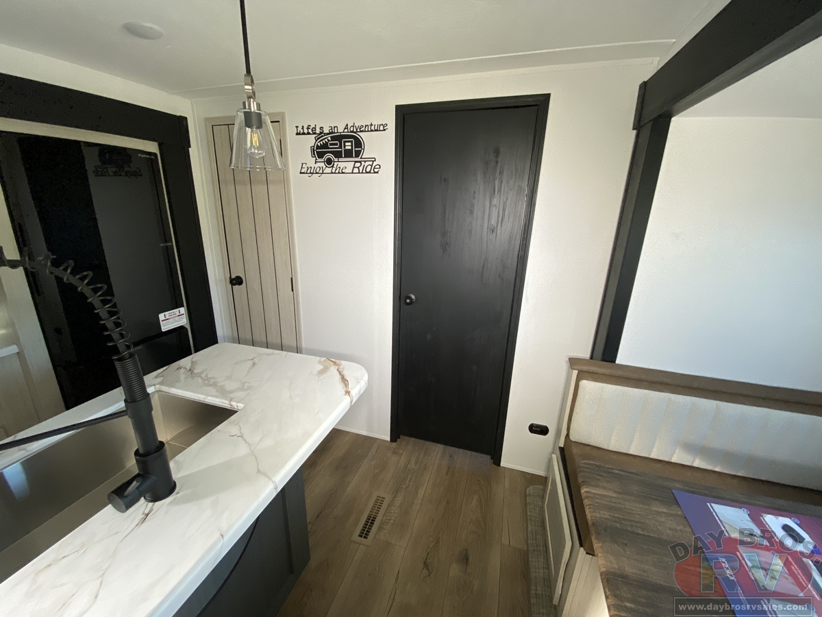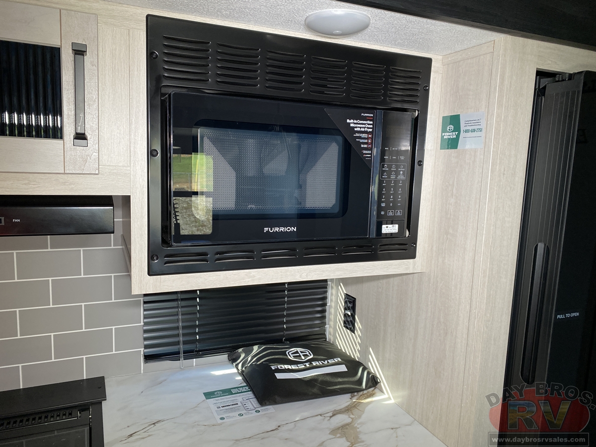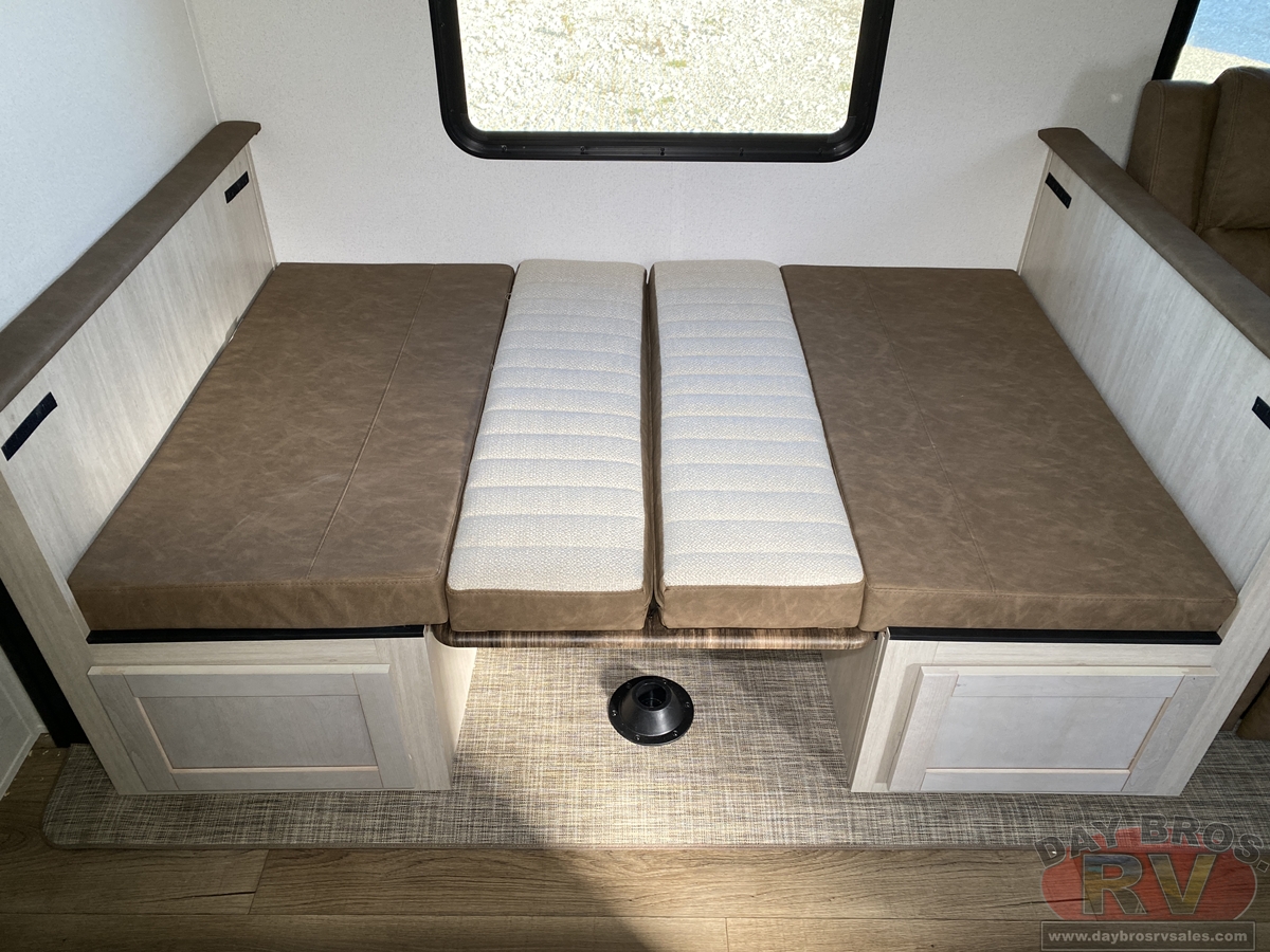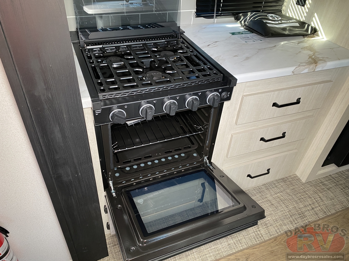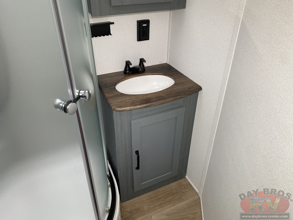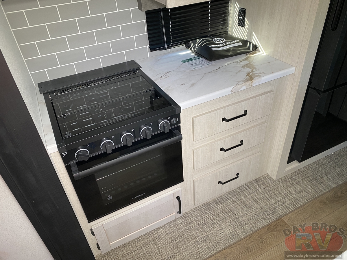 This bunk house travel trailer has four slide outs. Three on the same side and provide plenty of space for entertaining and all of your family/guests. The front bedroom with a slideout contains a queen bed, a very large closet, and washer/dryer prep. The whole layout of this camper contains no shortness of sleeping arrangements due to the bunk house in the rear as well. This bunk house will grant you three bunks a and a fold down sofa for everyone to enjoy their stay comfortably.