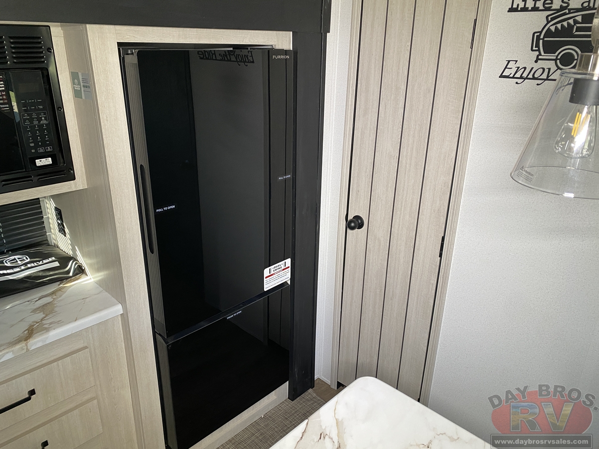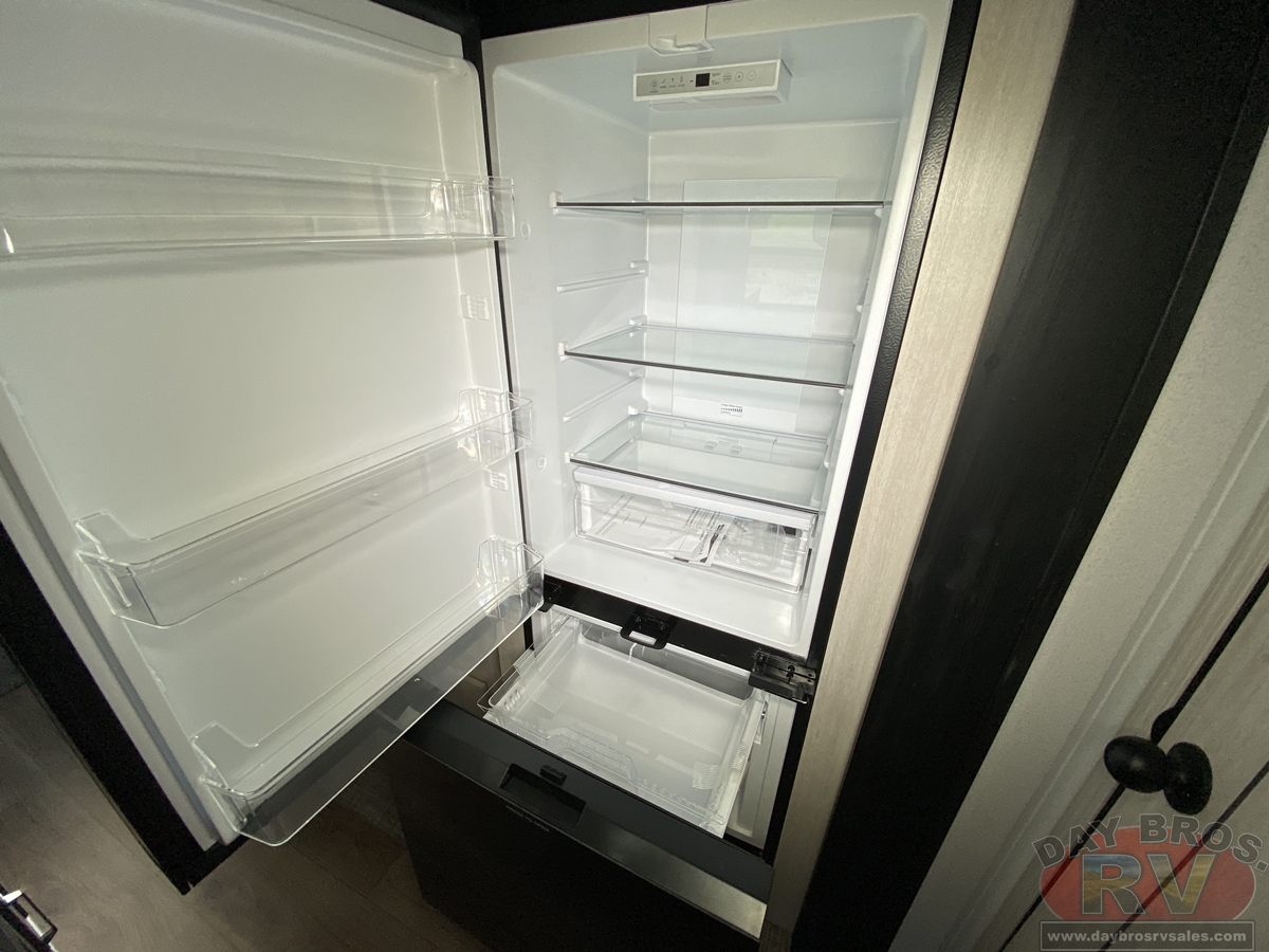 - 11 cu. ft. (12V) Black Glass Faced Refrigerator Doors are Dual Swing & Scratch Resistant