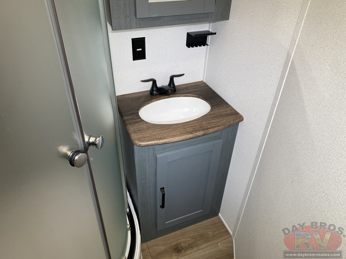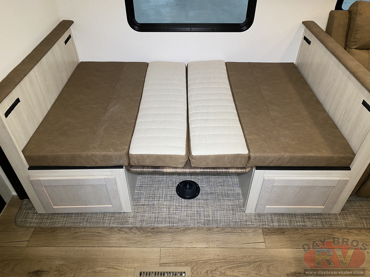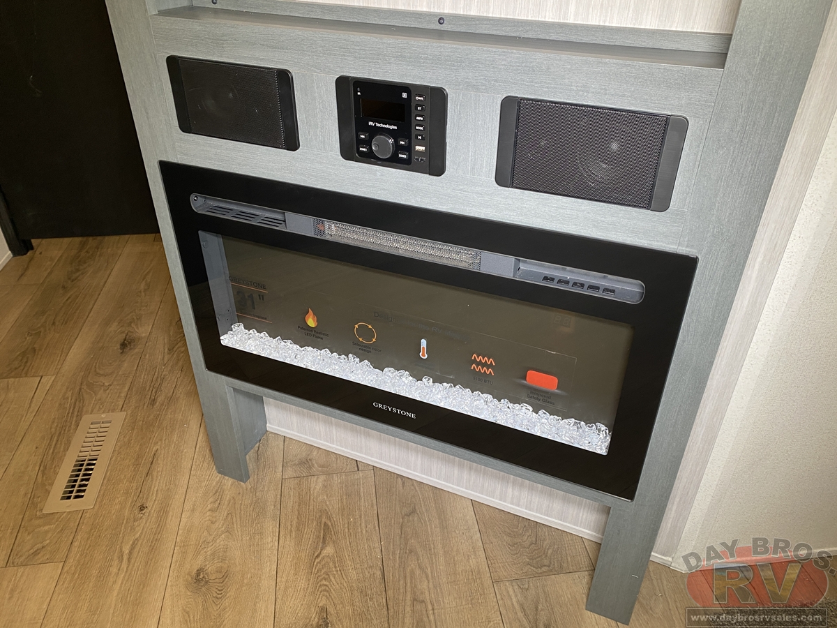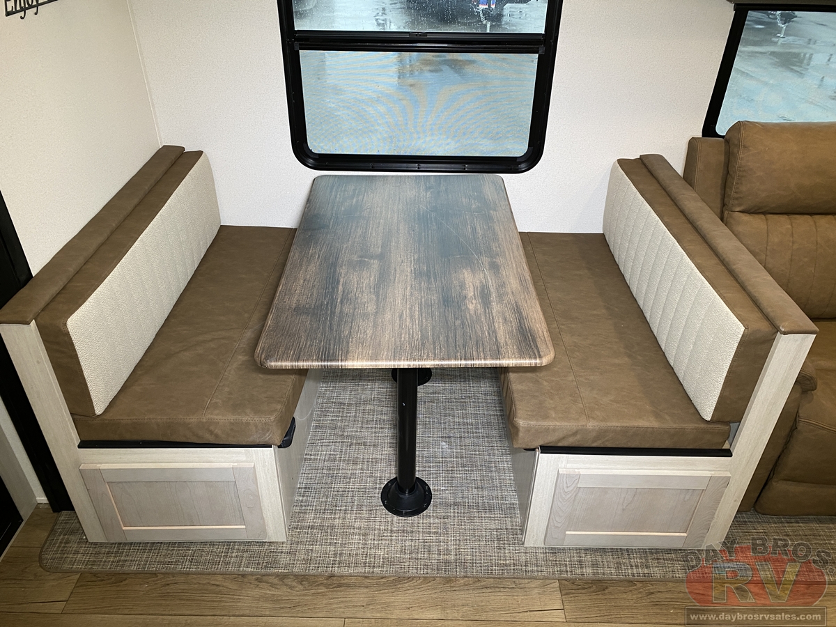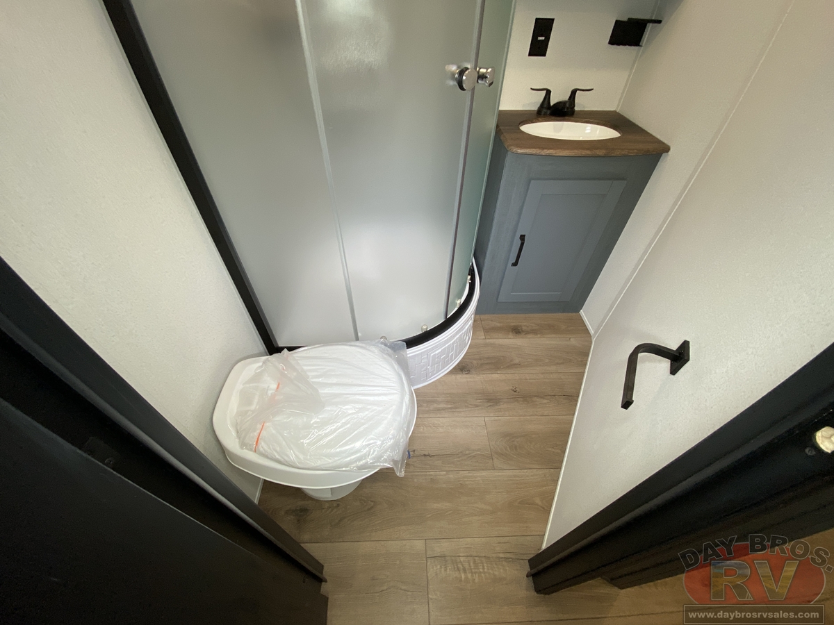 This bunk house travel trailer supplies you a great deal of space in the front bedroom. With a slide out and a large closet for all of your clothes, it will feel like your bedroom at home. The bunk house in the rear provides space for all guests to be comfortable and to make things a cut above, this floor plan provides two bathrooms. Furthermore, the exterior mini camp kitchen features a fridge and a griddle for those of you who like to cook in nature.
