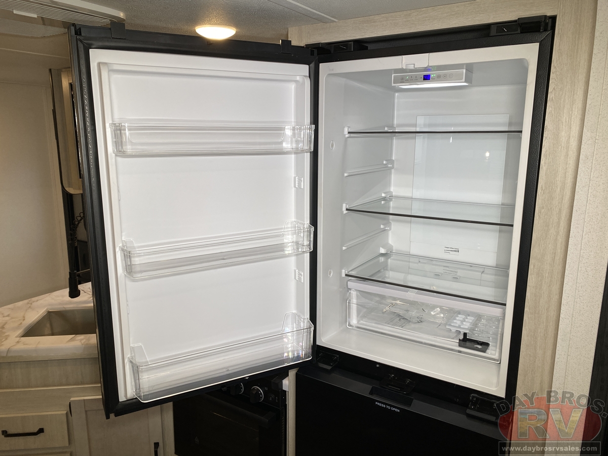 - 11 cu. ft. (12V) Black Glass Faced Refrigerator Doors are Dual Swing & Scratch Resistant