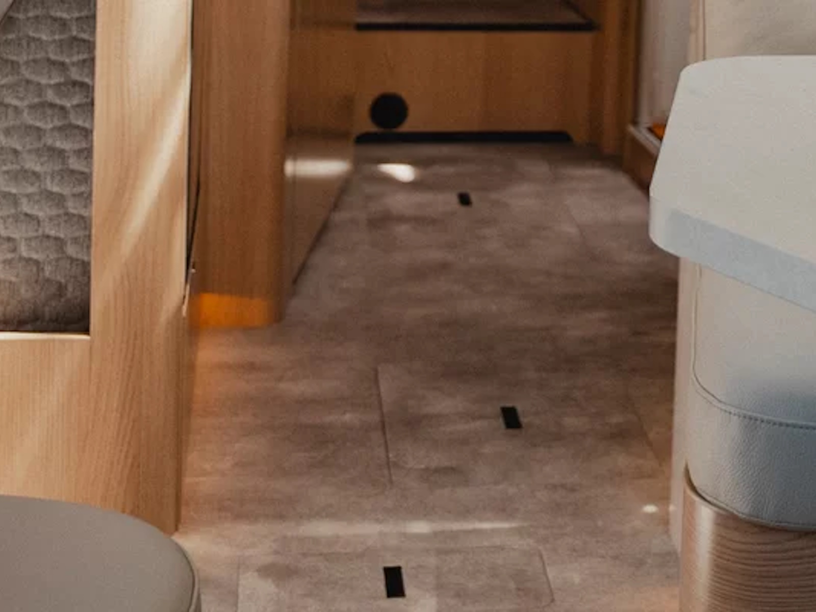 - The interior of the BlackLine impresses with a modern, stylish atmosphere. The newly designed floor in a subtle concrete look combines with the warm Grand Oak furniture decor to create a homey, urban feel that goes far beyond the standard of classic motorhomes.