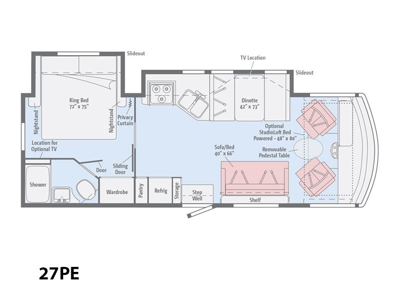 Designed, engineered, and built to our legendary quality standards, the Winnebago Vista lets you enjoy the integrated layout of a Class A motorhome at a very advantageous price point. With a long list of standard and available features including MCD roller shades, LED lighting, Primera-covered furnishings, powered patio awning with LED light strip, and a new powered front shade your Vista is ready to take you practically anywhere in comfort and style. Four slideout-equipped floorplans mean you can select the perfect Vista for your familys size and needs, while the available powered StudioLoft bed up front provides added sleeping capacity.