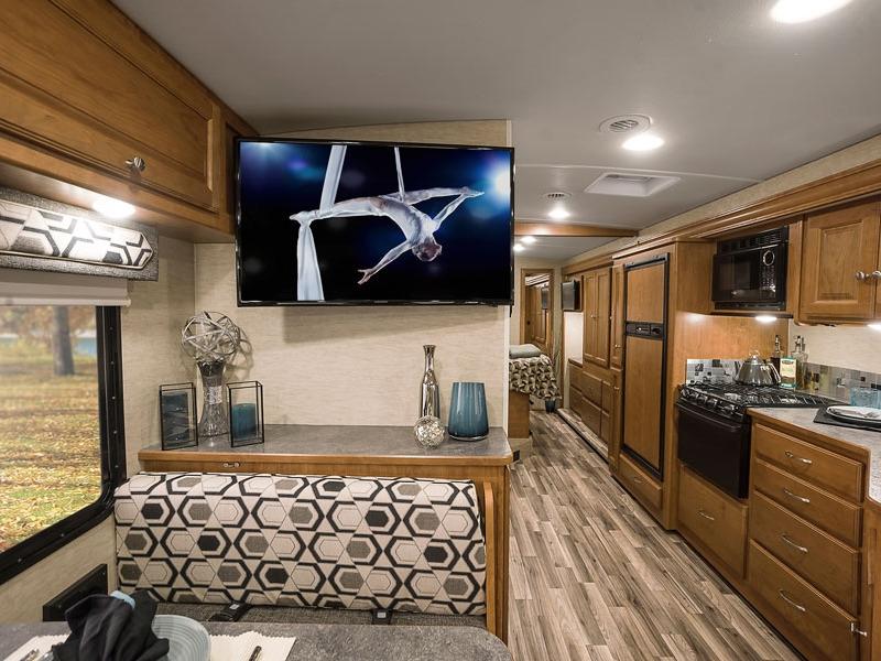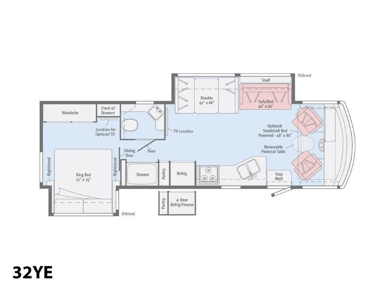 With four affordable, family-friendly floorplans built to Winnebago's legendary construction standards, the Sunstar is the perfect introduction to the Class A lifestyle. Each floorplan boasts a slideroom and is loaded with standard features such as LED lighting, MCD roller shades and an easy-to-turn Versa cab driver seat. With an exterior kitchen featuring a stainless steel RV grill, ice chest with lid and refrigerator that will make your tailgate dreams come true, the 29VE has much to envy. If you have Class A ambitions and a modest budget, youll find a home in the Sunstar.