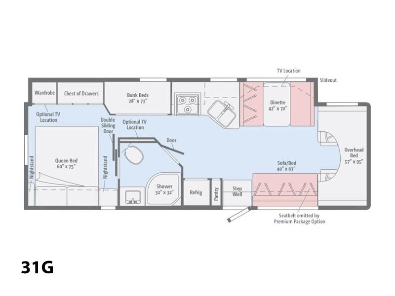 From the new 22M with a U-shaped dinette that converts to a cozy bed, all the way up to the triple slideout 31D, theres a Winnebago Spirit thats just right for you. Every Spirit features a comfortable lounge/dining area, private rear bedroom and thanks to the included cabover bunk a variety of sleeping options for family and friends. Each Spirit also includes a large rear trunk, energy-efficient LED lighting, HDTV with DVD player, patio awning, and much more, making the Spirit the smart choice for families on the go.