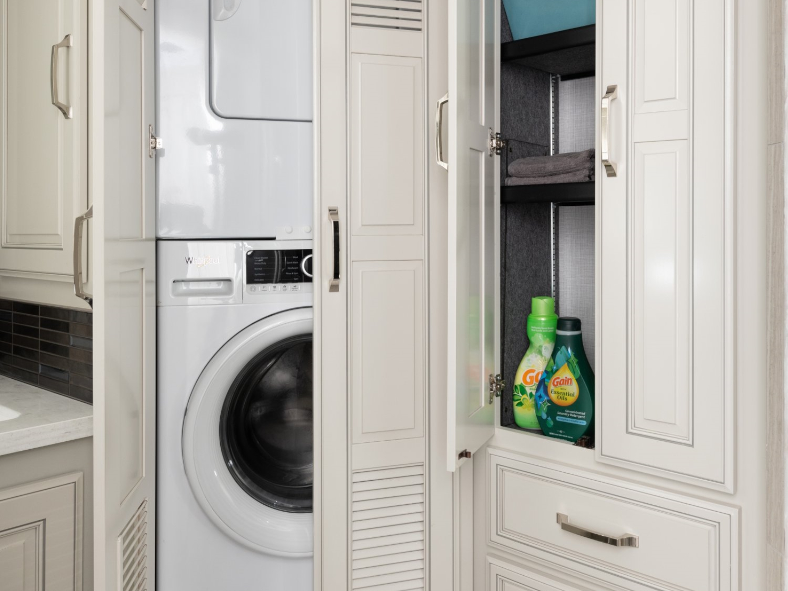 Residential refrigerator, induction cook top, and convection microwave come as standard equipment.