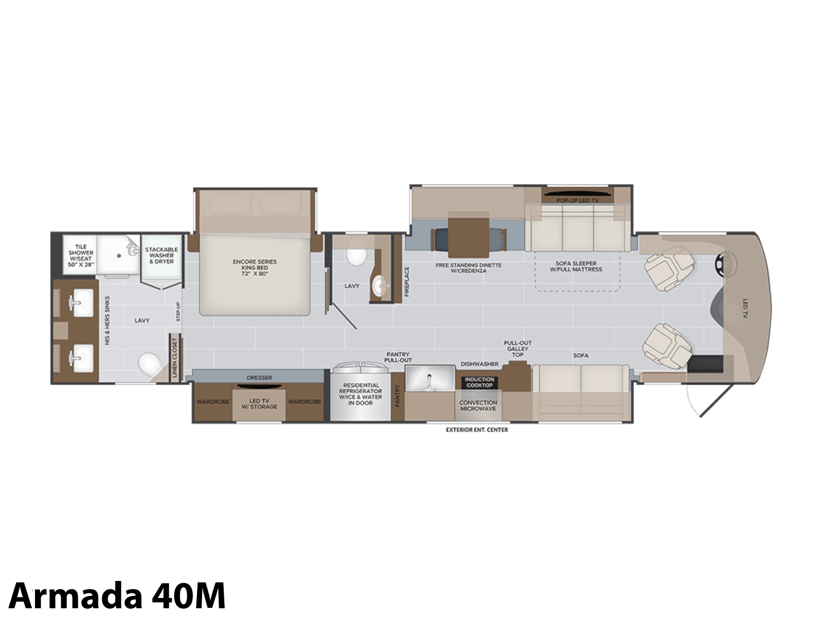 This is what camping should be: Plenty of big, cozy sleeping space; places to cook and eat fresh, delicious meals together; comfy couches and cozy fireplaces to wind down at the end of the night. The 2026 Armada is the luxury hotel-on-wheels you deserve, built atop some serious power, safety, and stability to get you where you’re going. In this luxury RV, outdoors is great, but indoors is greater.