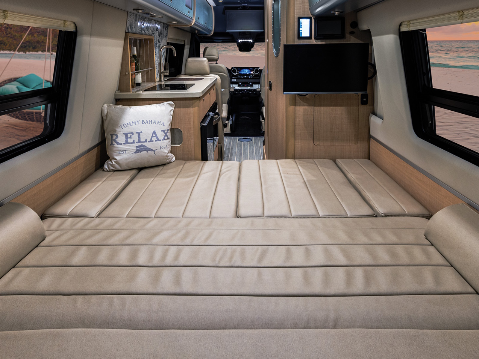 Right when you step inside, four upscale upholstered captain’s chairs make an impression, along with a sofa and two more side seats in the back. Each seat is covered in Ultraleather®, a supple yet soft fabric that not only looks great but also stands up to wear and tear. It resists temperature change and is easy to clean, pet-friendly, and won’t scratch or stain – so that first impression feeling lasts for years to come.