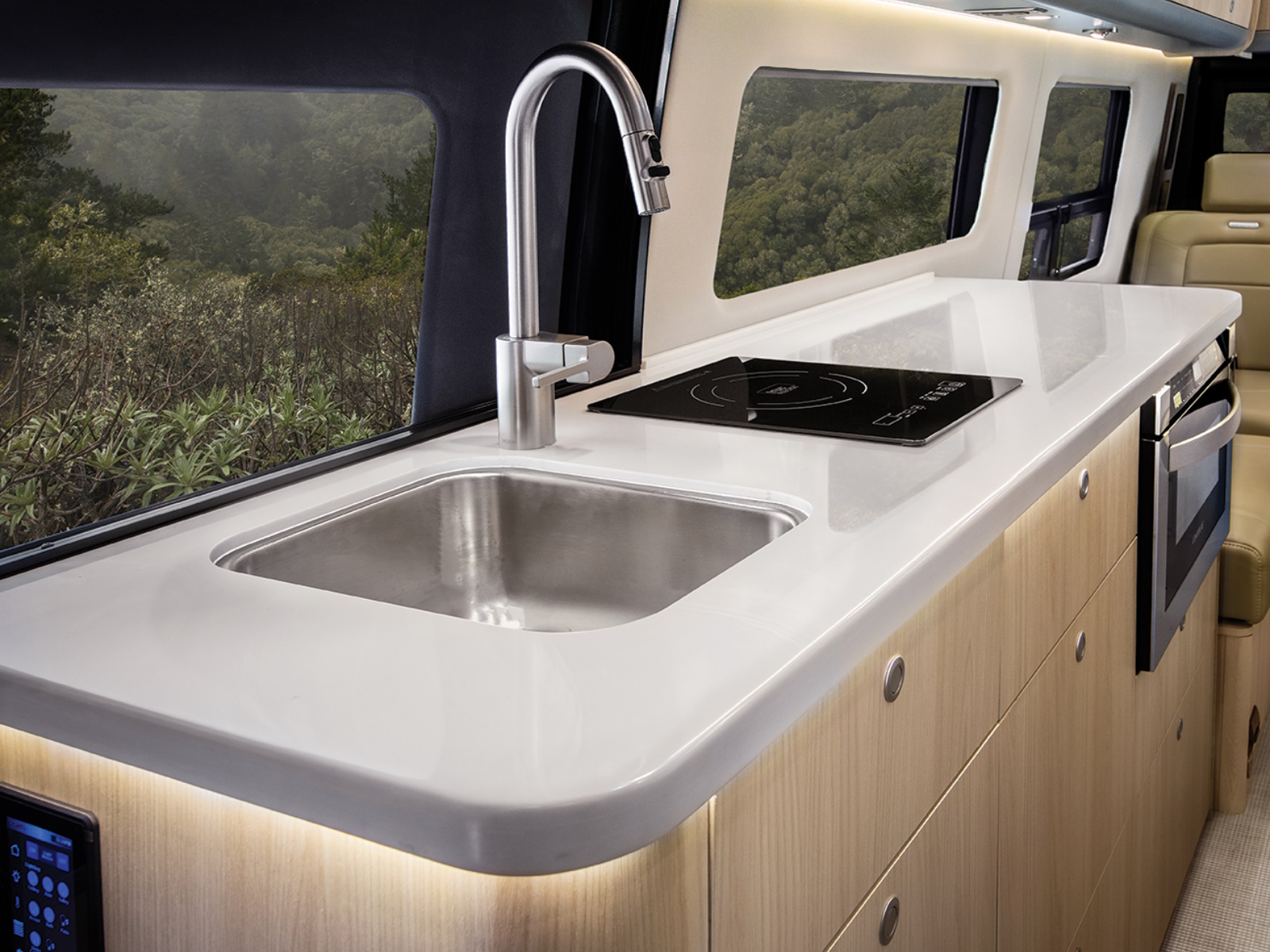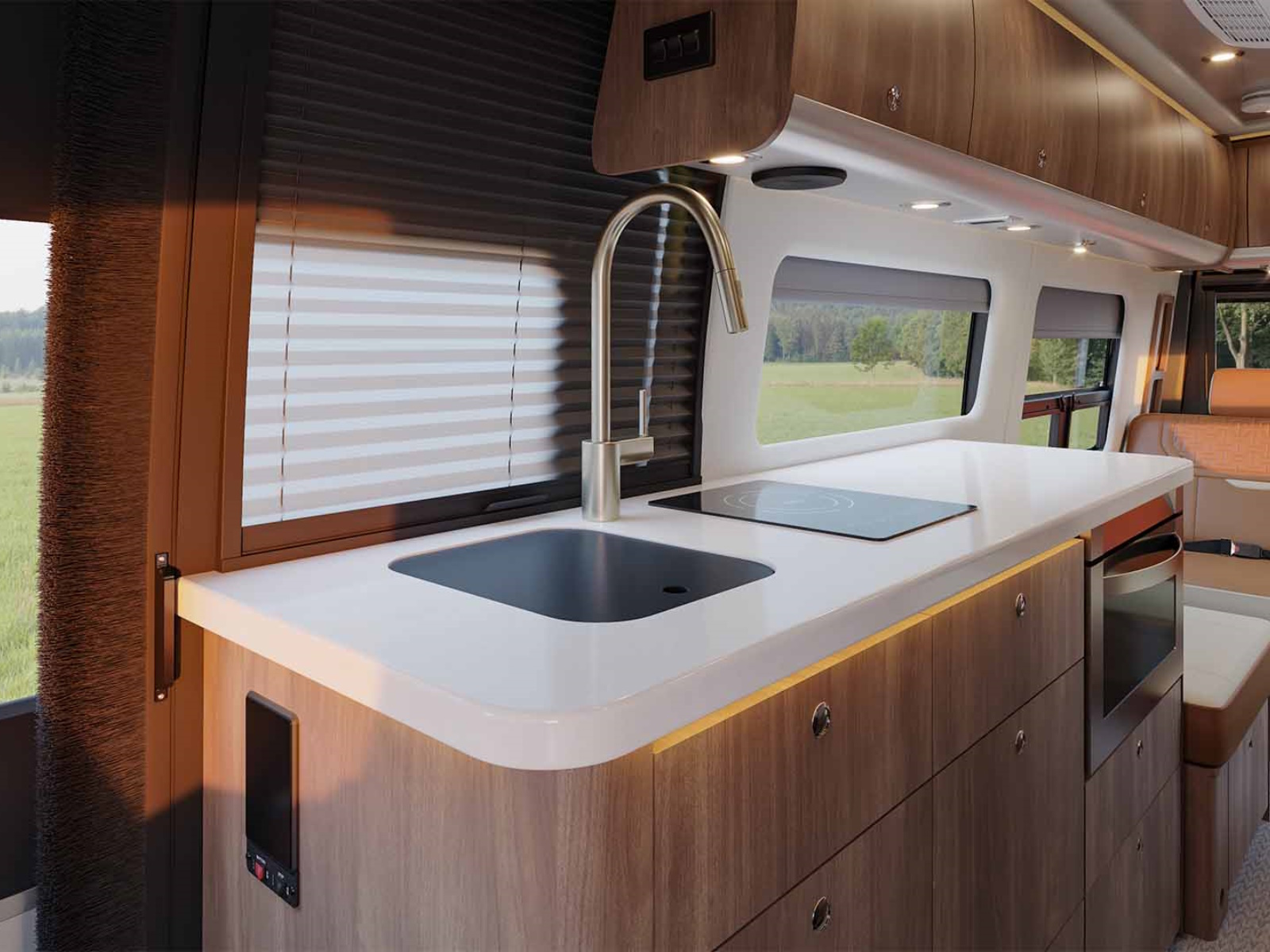 The all-new standard Advanced Power System delivers 10.3 kWh of heated lithium battery power, a 3,000W inverter, dual-input charging, and an induction cooktop—giving you the freedom to run appliances, cook, and stay off-grid longer without sacrificing comfort or convenience.